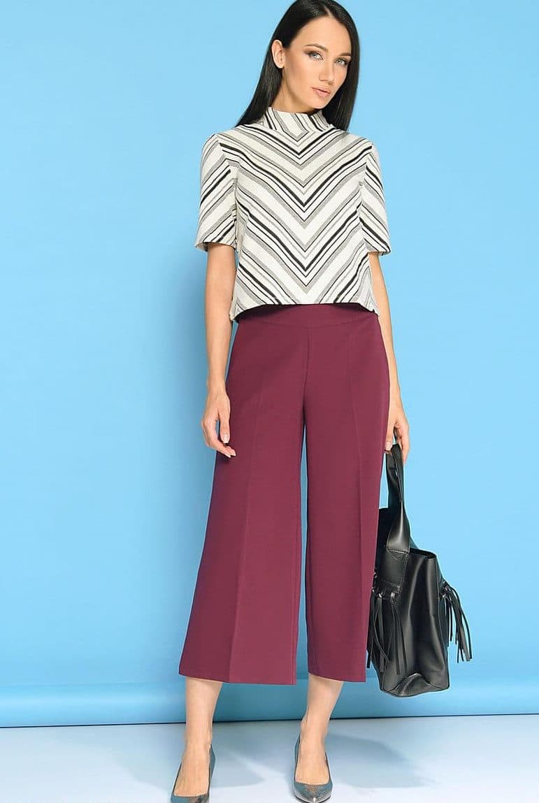 Pants-culottes - in themselves already an original look of trousers. And in burgundy color, they will attract even more attention to your person.