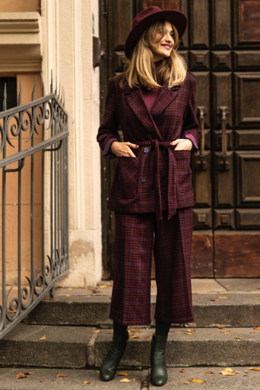 Culottes in burgundy, can be combined with a jacket. So you get a trendy, stylish suit.