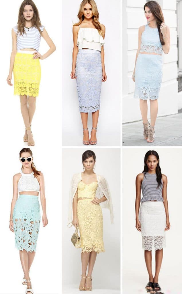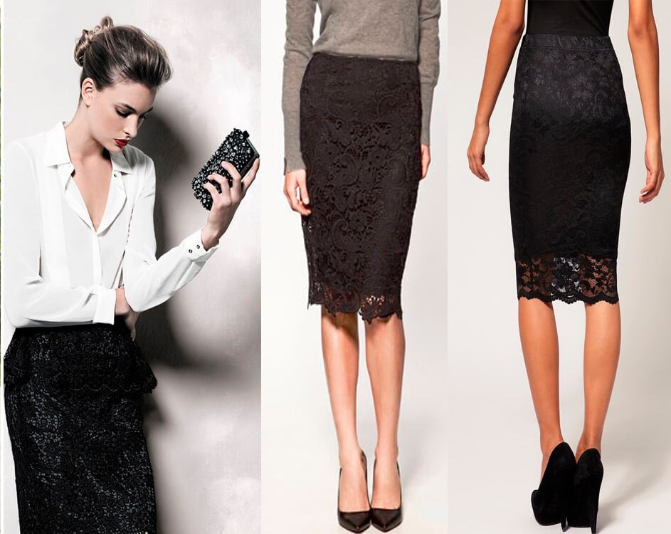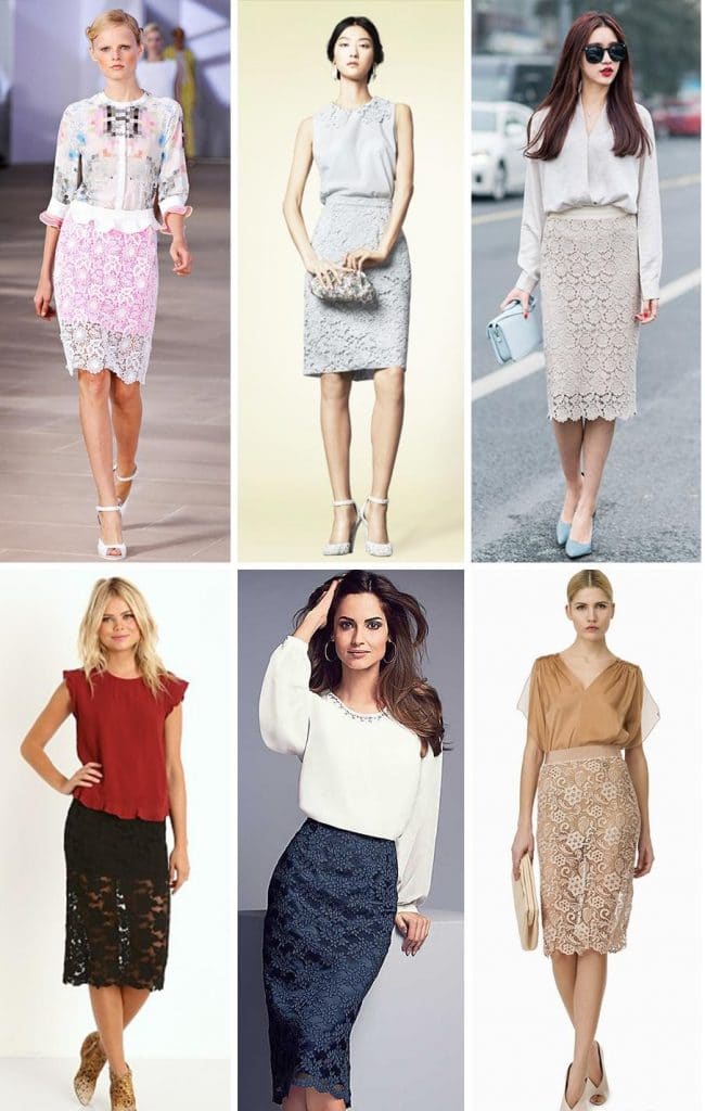 More recently, we discussed what you can wear red pencil skirt, and now let's figure out what to wear with a lace pencil skirt. Such a skirt will emphasize the elegance of the silhouette and the beauty of the legs. It can be of different lengths and types: half transparent, with a small lining or strict from thick lace. What can you combine such a skirt with?
