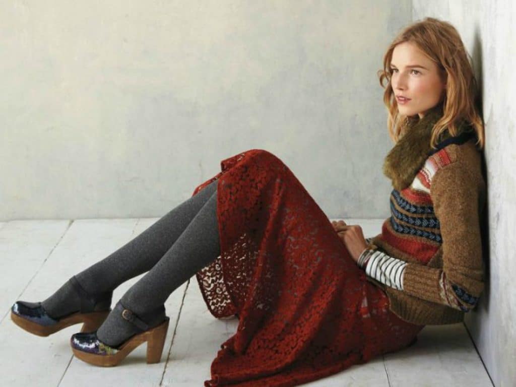 For a cool walk, a lace skirt with a voluminous jumper is suitable. Only you decide whether this image will be romantic or not.
