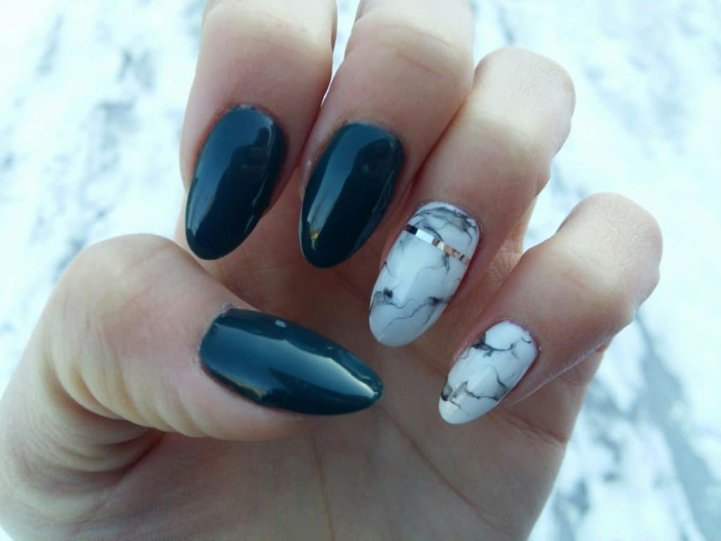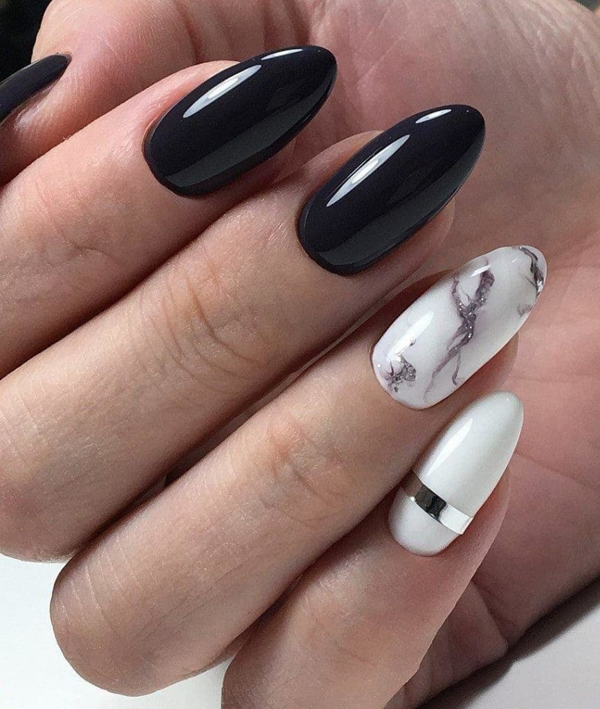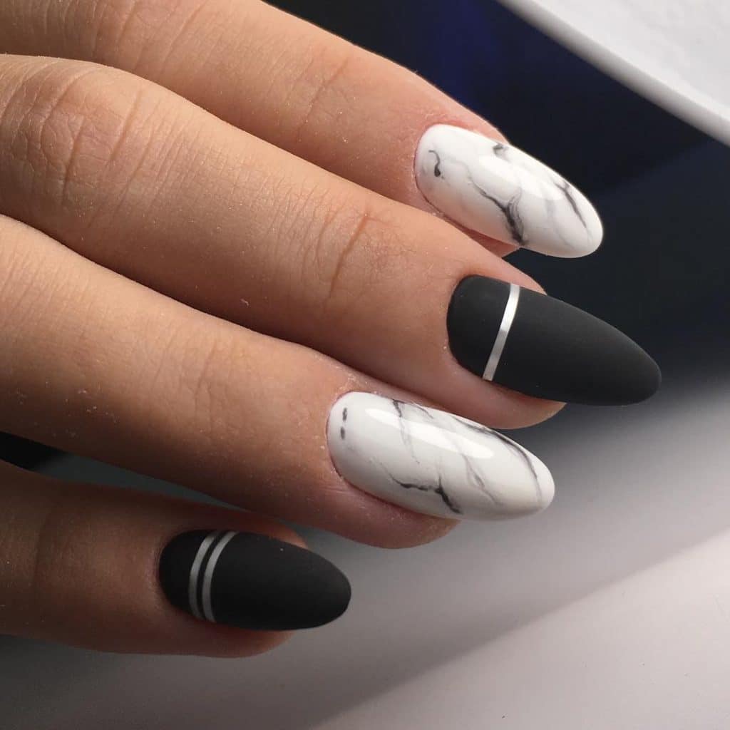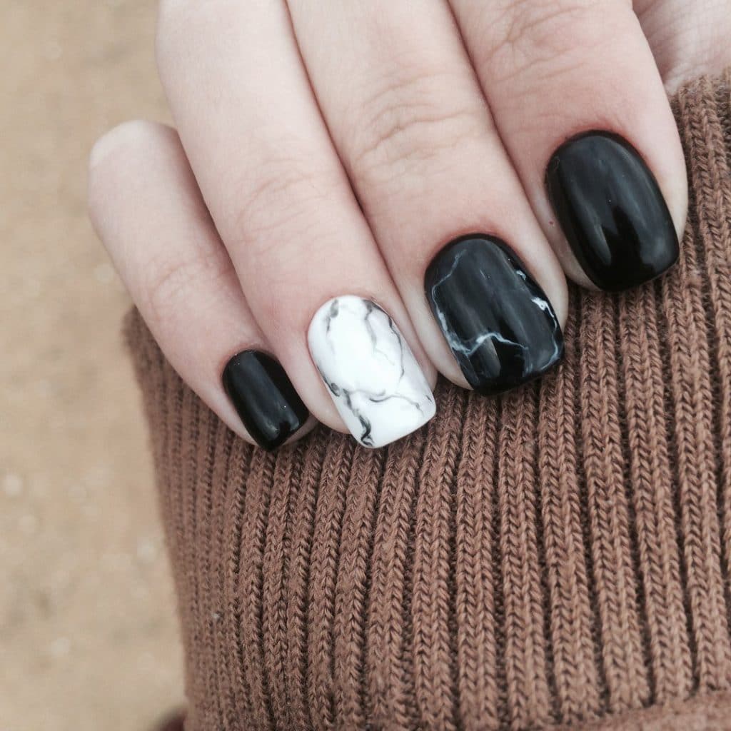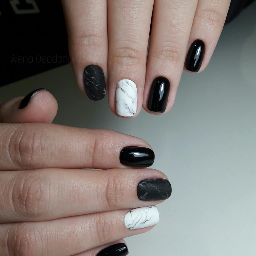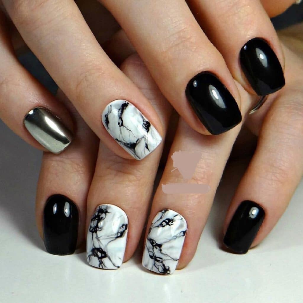 Marble manicure is also one of the favorites in black and white manicure. The technique of its implementation is quite simple, so even beginners can master the marble design.