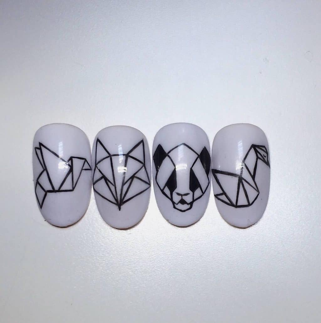 But this design of manicure appeared recently. Design in origami style, the name of which speaks for itself. Uncomplicated figures of animals and other objects began to appear on the handles of the beautiful half of humanity only this season. However, the drawing of such figures is quite difficult, so the design of nails in the origami style is available only to professional experienced craftsmen.