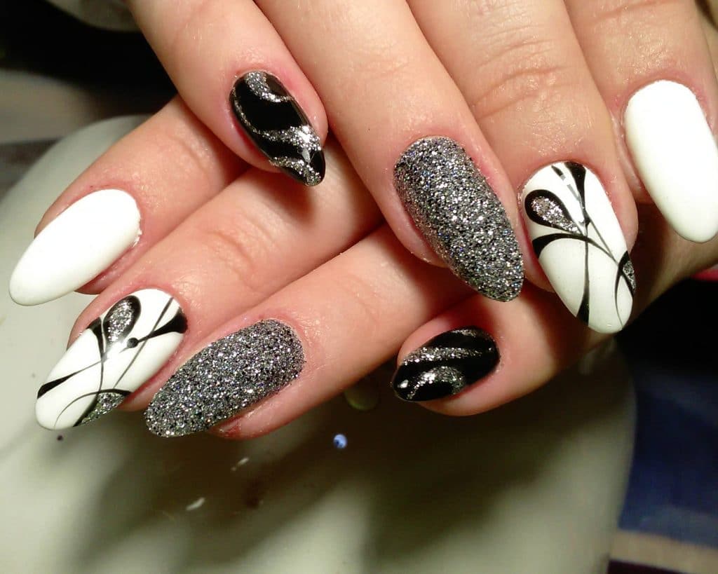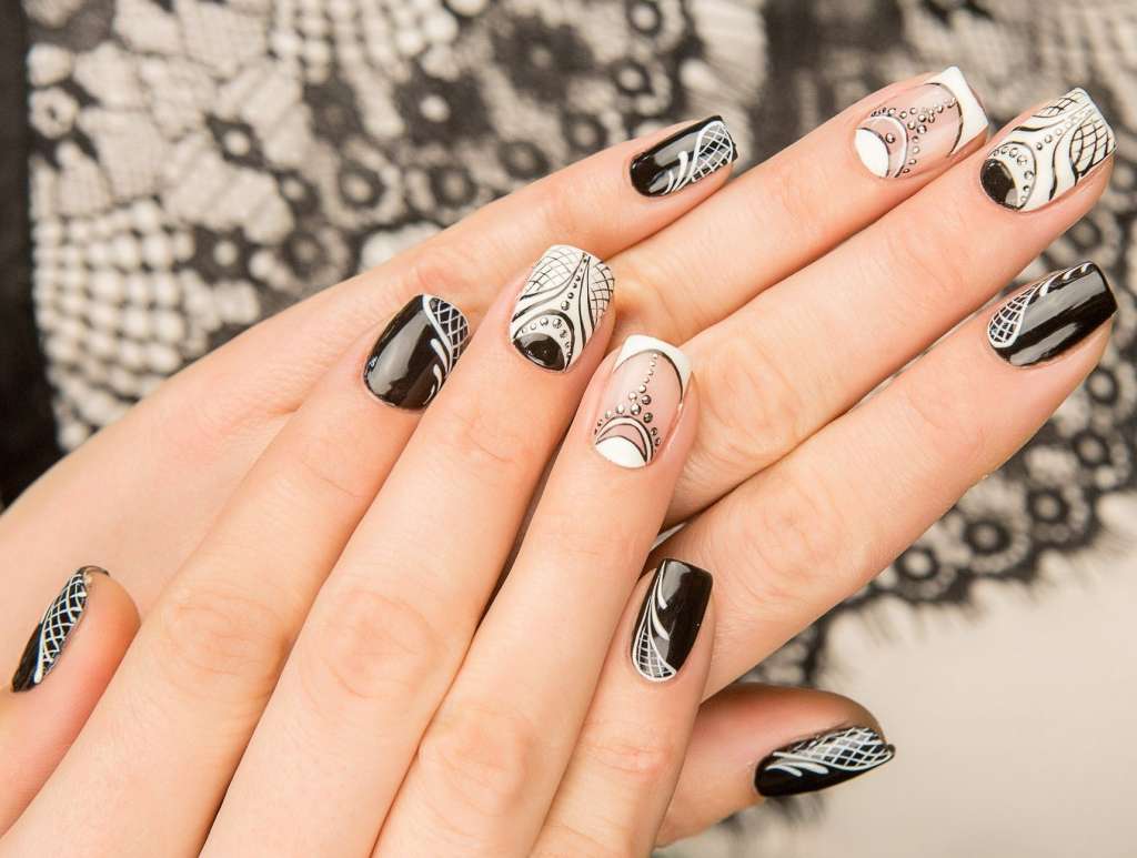 Black and white patterned manicure is also very popular. Here everything depends only on the client’s imagination and professionalism of the nail service master.