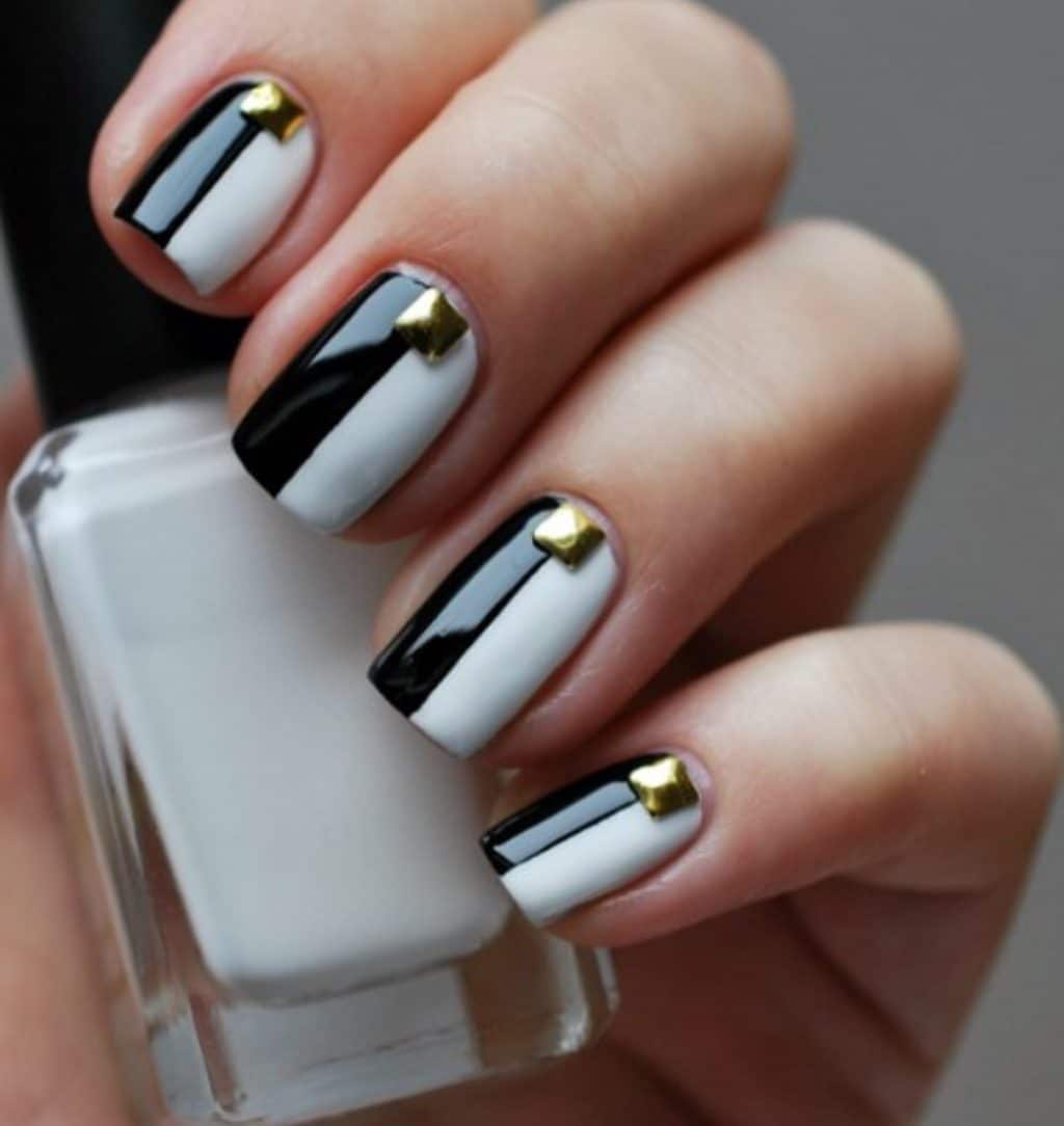 Depending on the case for which a manicure is created, you can adjust the ratio of white and black colors, as well as the number and variety of decor elements.