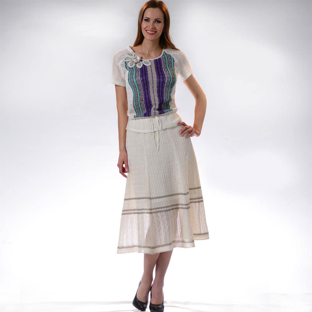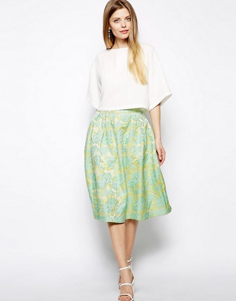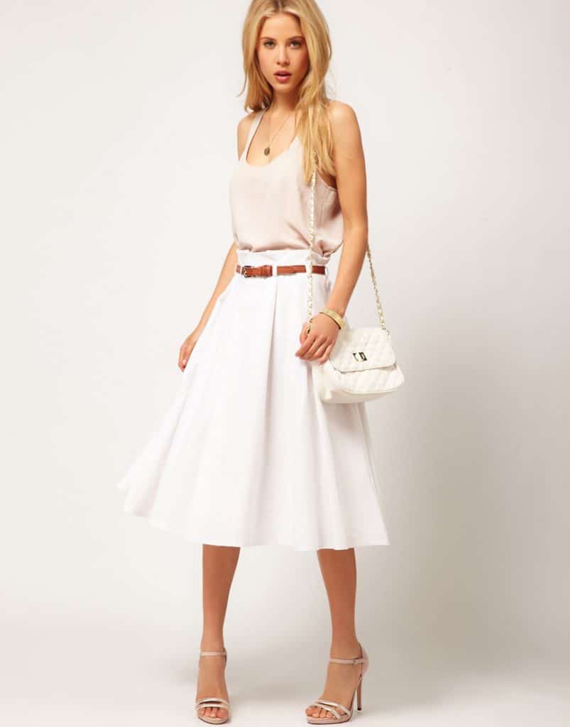 Creating an unforgettable look with a midi summer skirt is easy. Here the same rule with the top works as in maxi skirts: do not distract attention from the skirt. With a summer midi skirt, it is quite possible to create a business bow, for this, use pastel colors. Holders of a thin waist can combine a midi skirt and a crop top. Beauties with more magnificent forms should pay attention to straight-cut midi skirts.
