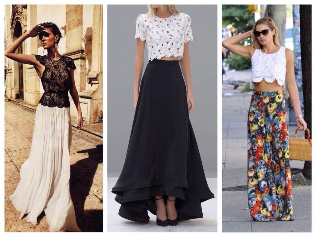Top to summer maxi skirt is not difficult to choose. The main requirement is that the top does not distract attention from the skirt itself, since it is it that is the main component of the image. A plain top, tank top or blouse is perfect.