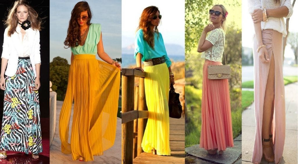 Maxi summer skirts are divided into two types: skirts to the ankles and floor skirts. Both models are very popular and their main difference is the shoes with which you can wear them. If we are talking about a skirt on the floor, then ballet flats, boat shoes or sandals are suitable for you, in some cases you can even put lightweight sneakers on. As for the length to the ankle, it is best to choose elegant shoes that will slim your leg, since the emphasis in this outfit will invariably be on your ankles. Sandals with a strap are perfect.