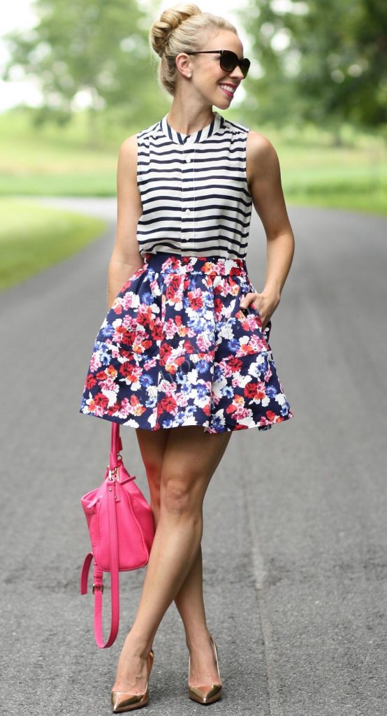 Summer mini skirts are suitable for young beauties who do not hesitate to show their legs. The most popular mini skirts in the summer are flower skirts. Skirts sun or semi-sun with flowers will look great with a top, T-shirt or t-shirt. You can use a solid top, or complemented by an original, but not too saturated print. With a white or blue mini skirt, you can wear a favorite vest. In cool weather, you can put on a denim jacket or a light jacket over leather jacket.
