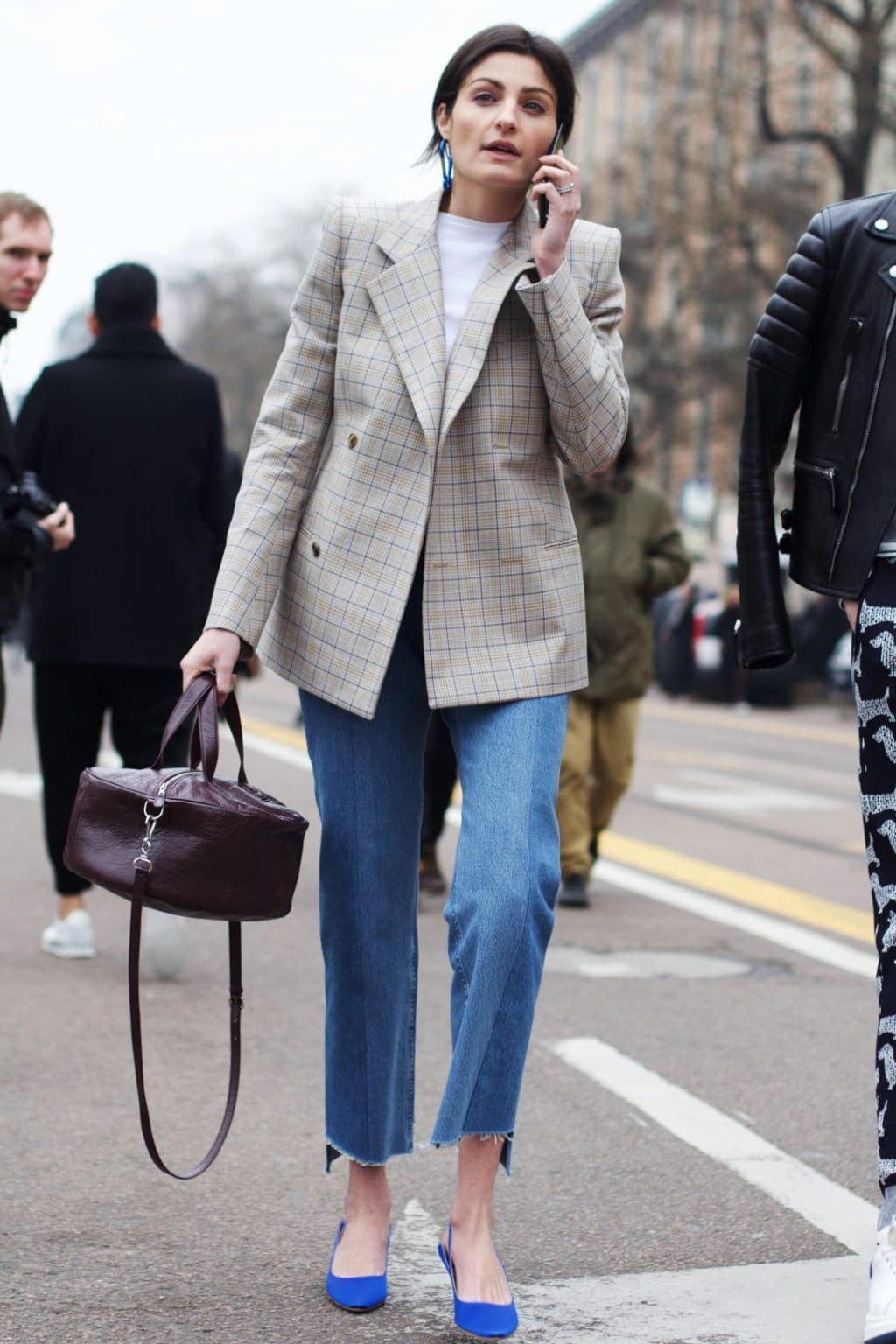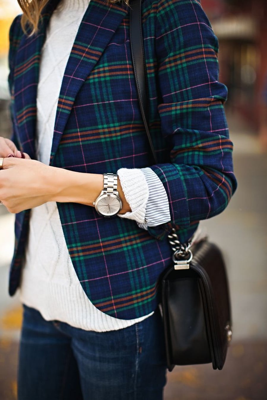 A checkered jacket is considered one of the most versatile jacket options. It can be worn to work in a combination of a strict image.