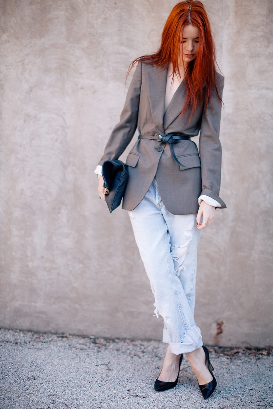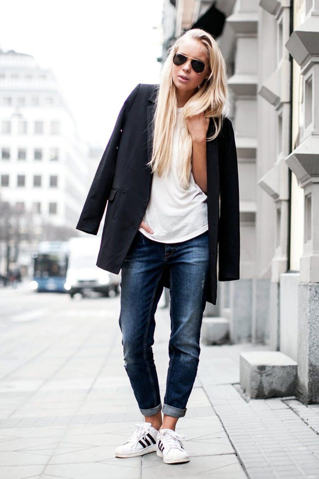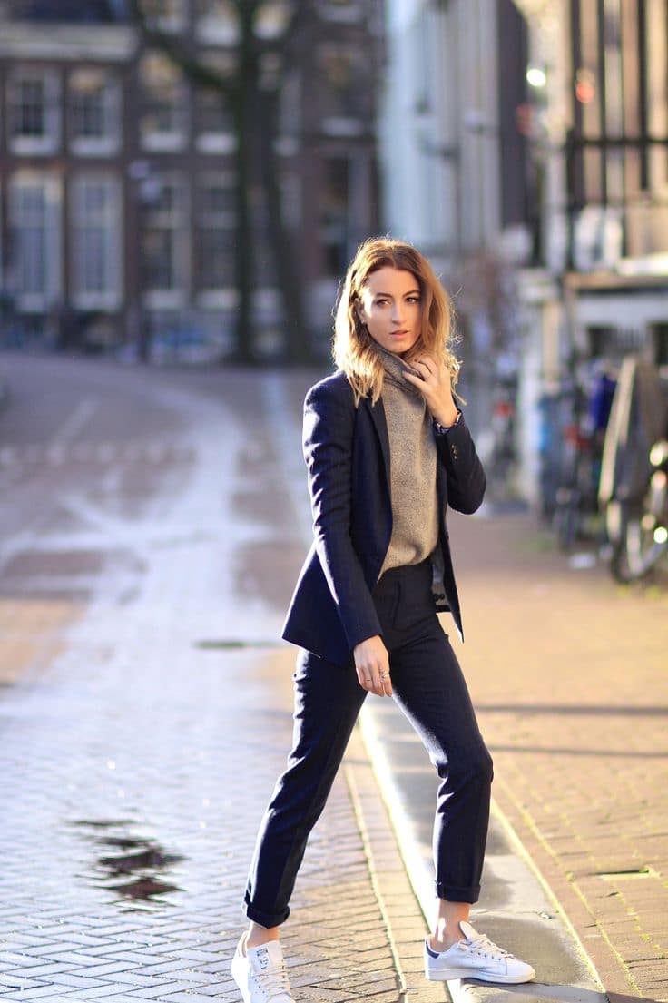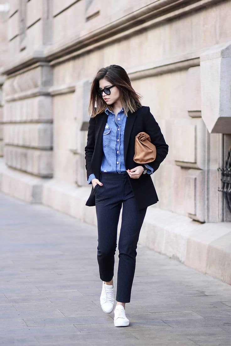 Or choose a sporty look. An image in a combination of jeans and comfortable shoes.