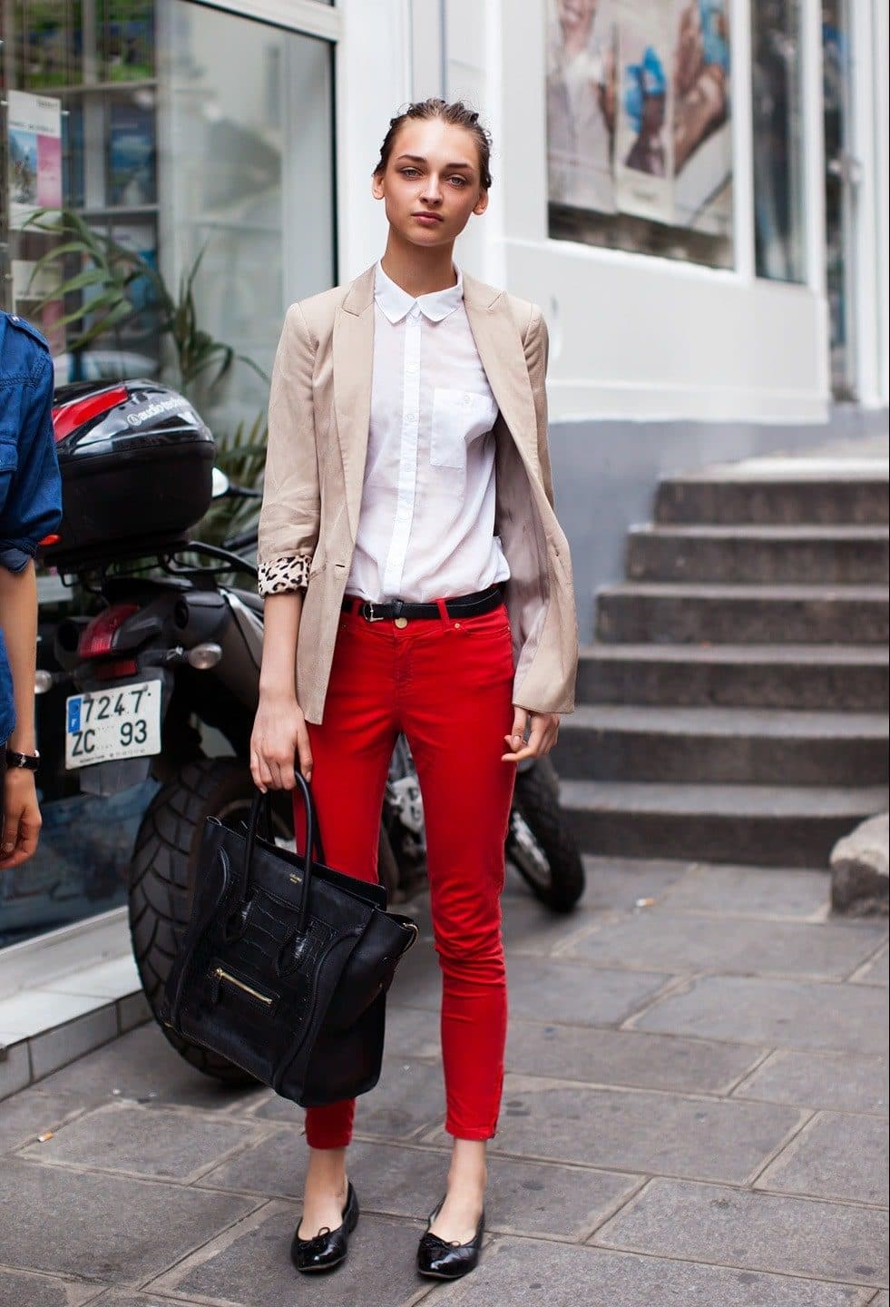 For an everyday look, we give the choice to trousers or jeans, even if they are torn. The shirt can be denim, and the blouse is light chiffon, in which there will be an elegant neckline.