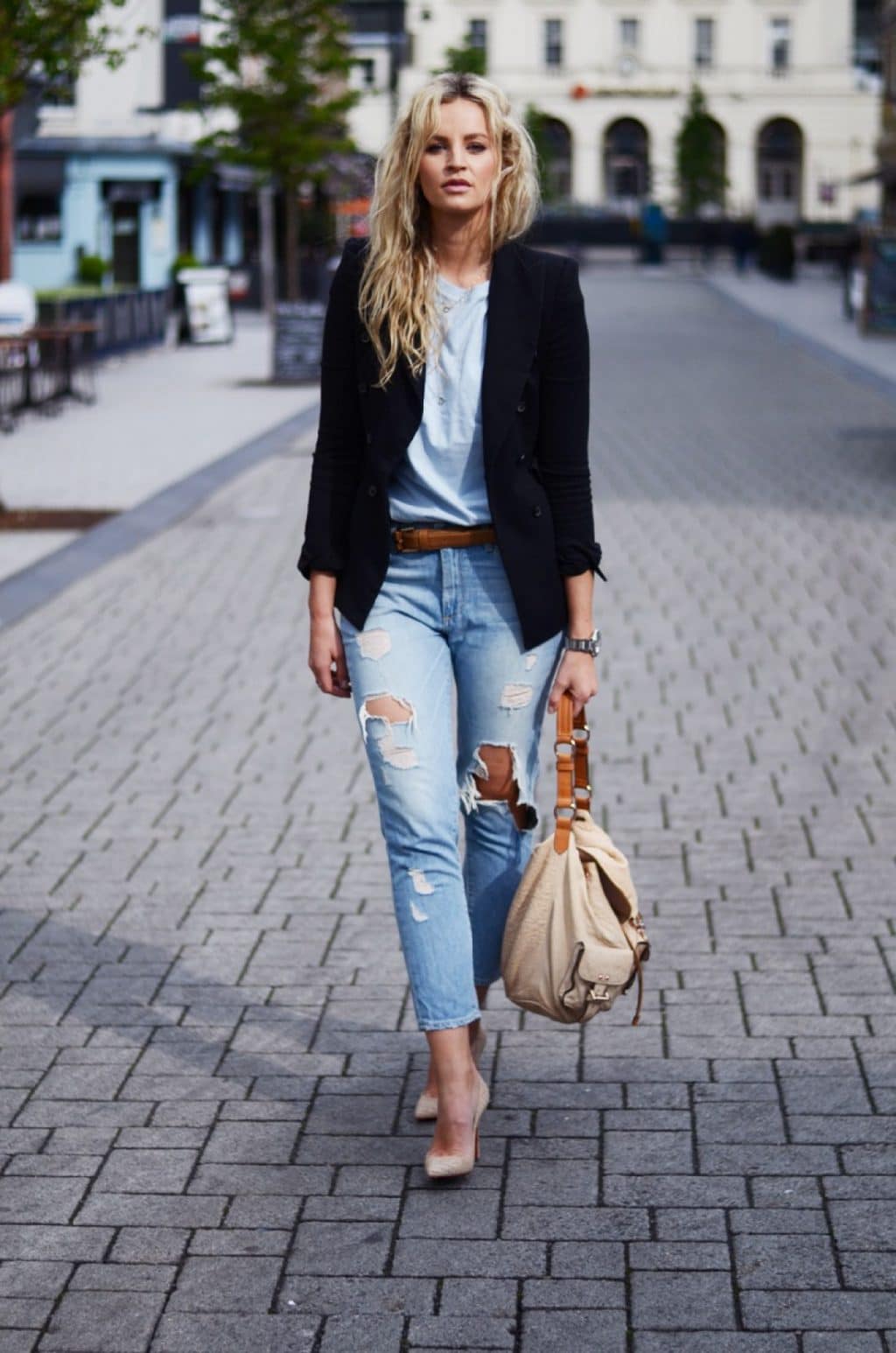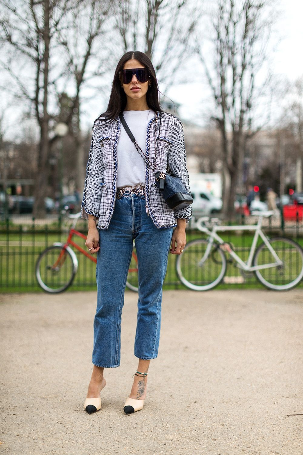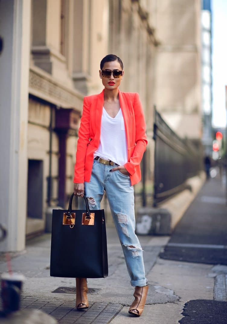 Jeans, a T-shirt, a jacket and sneakers or pumps combine perfectly. This is the easiest way to make the jacket not office, but casual and even sport chic.