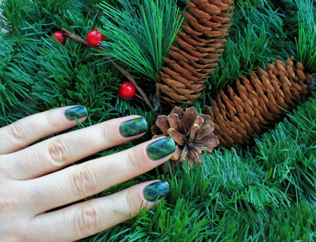 The jacket, made in emerald color, has a very attractive, unusual look. With such a manicure, it will not be embarrassing to mark the new 2024 year.