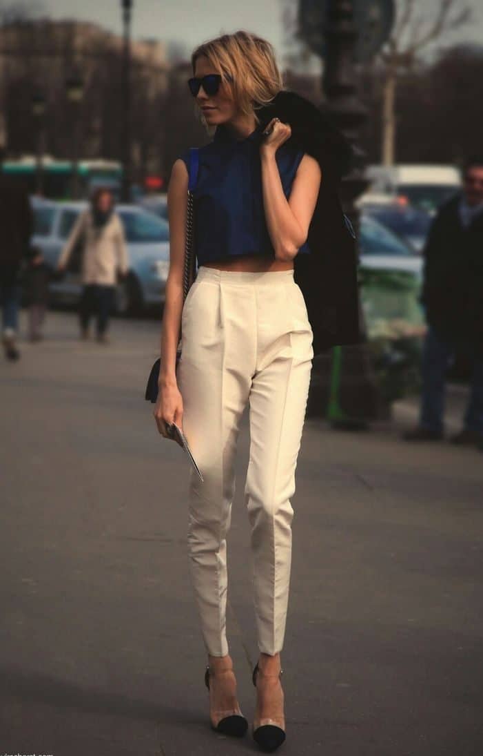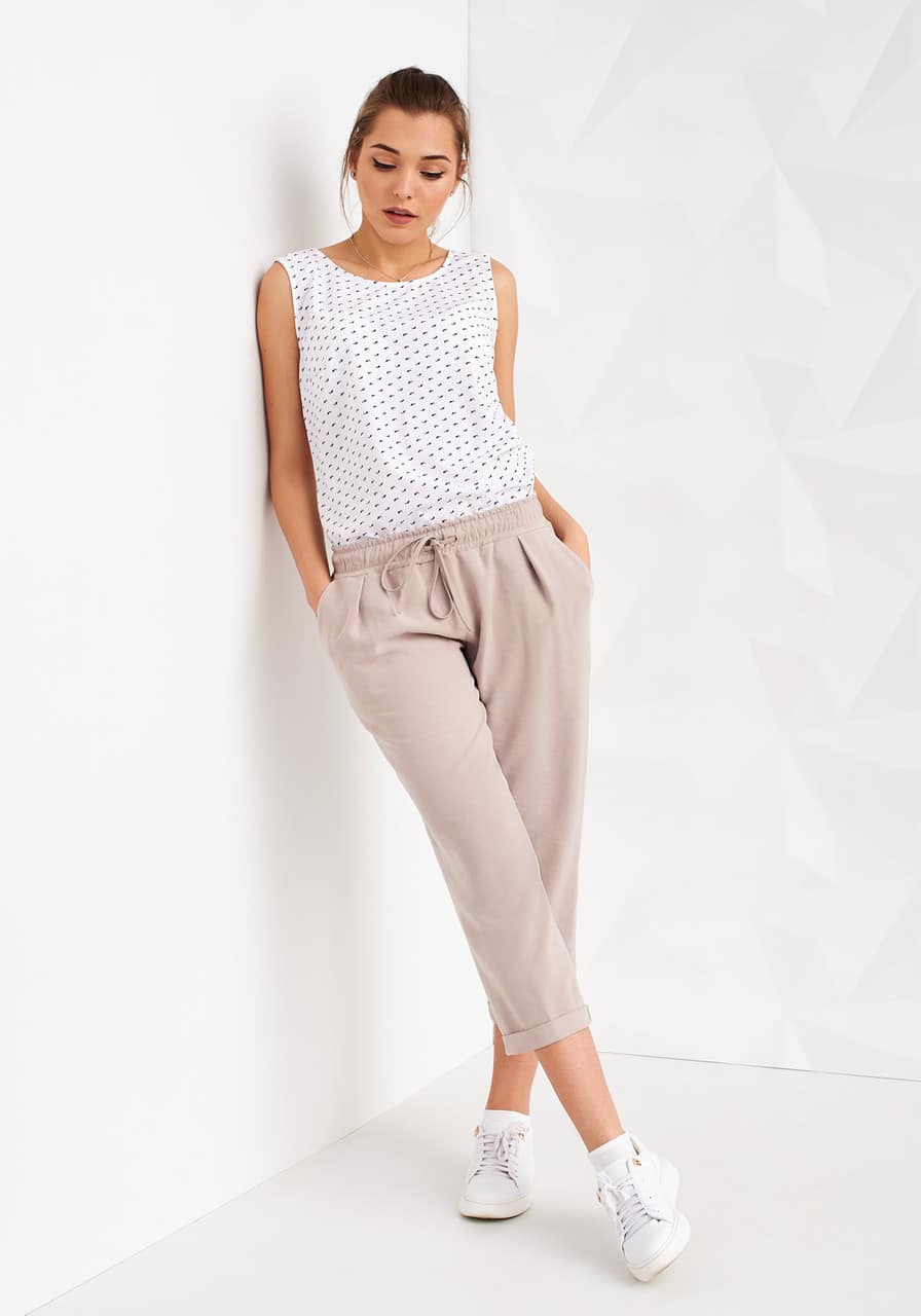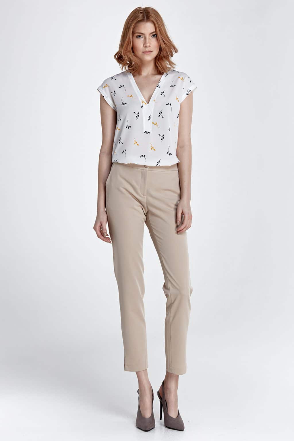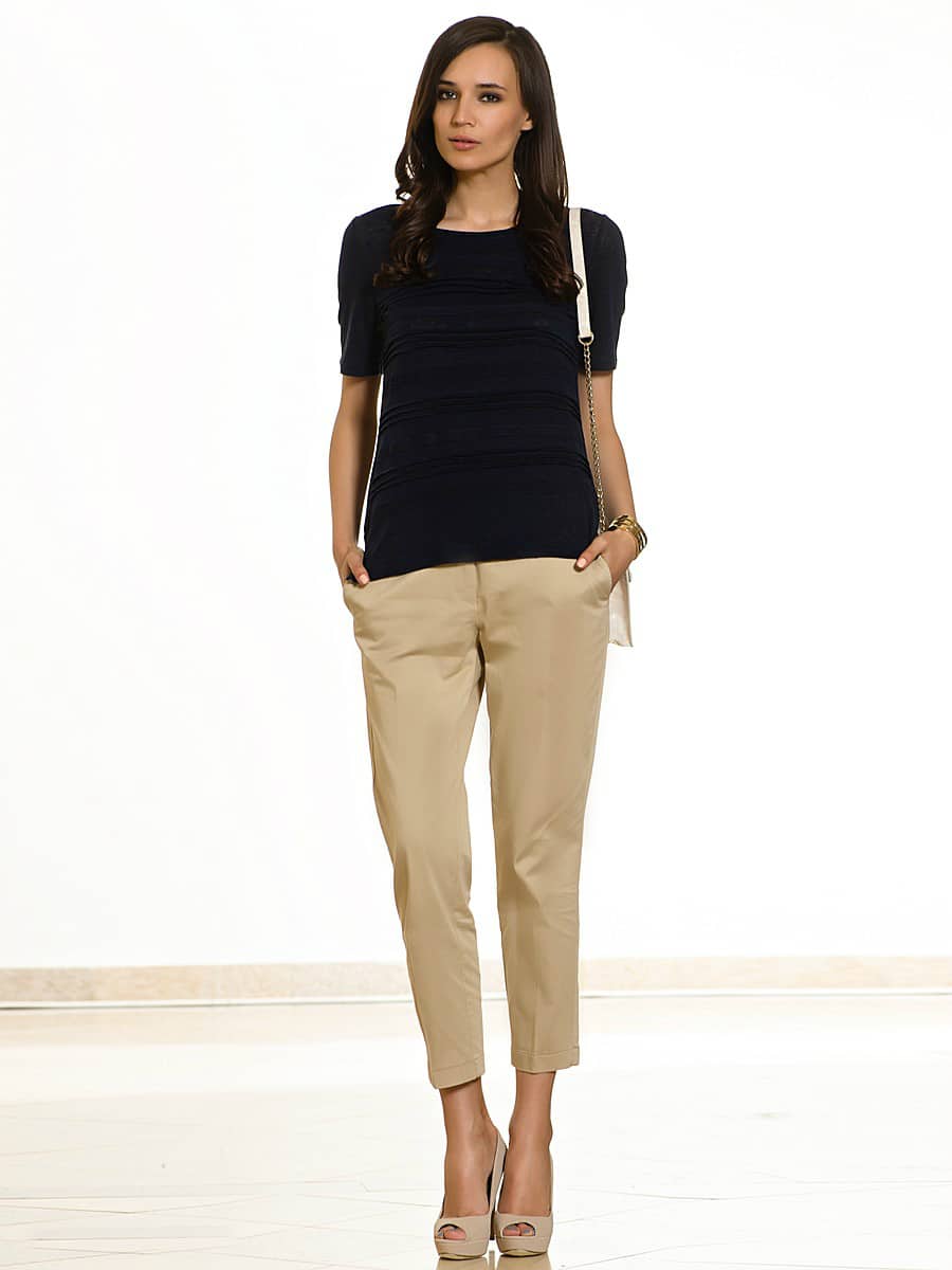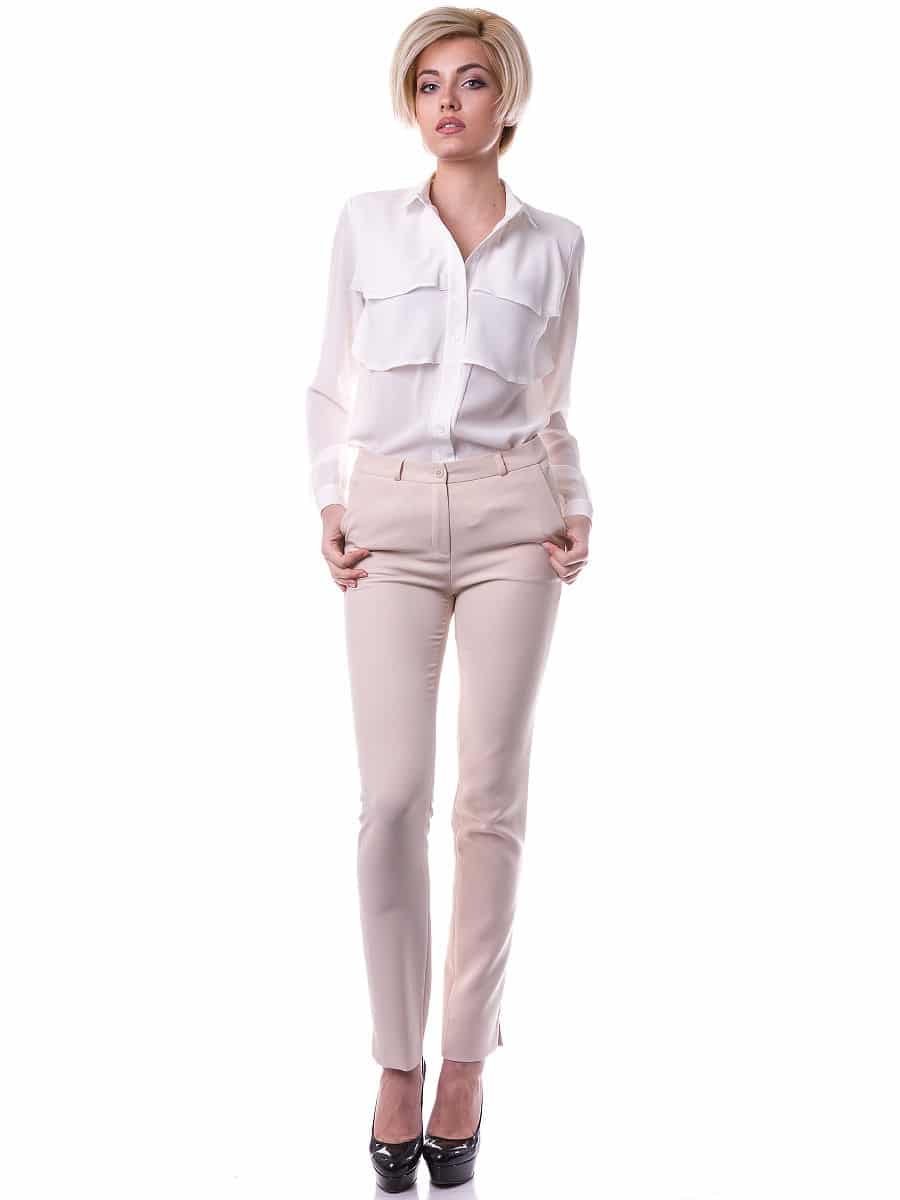 Under the shortened models of beige trousers, you can wear open shoes. This will draw even more attention to your legs, so your pedicure should always be impeccable.