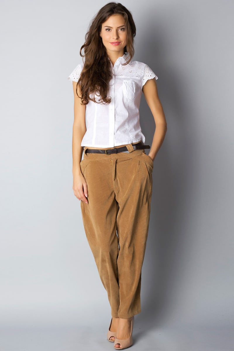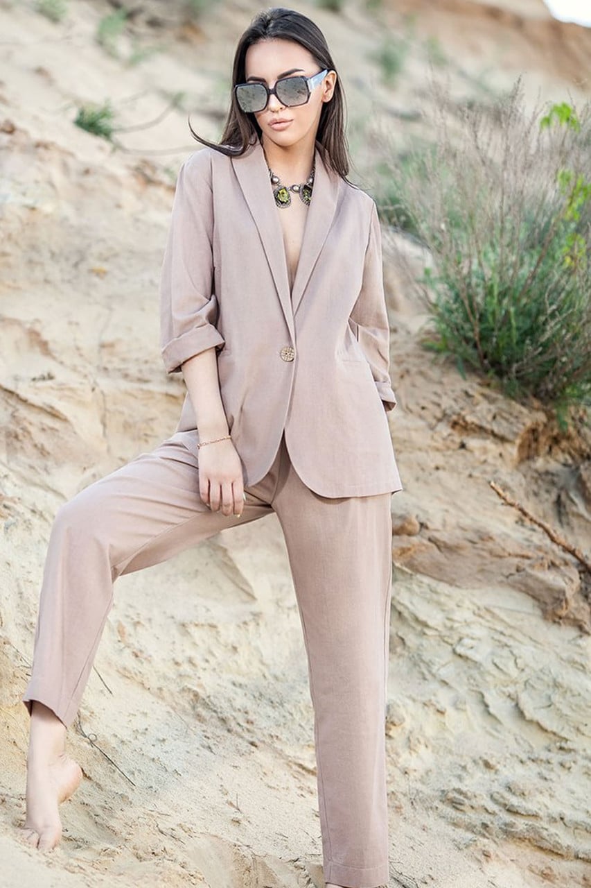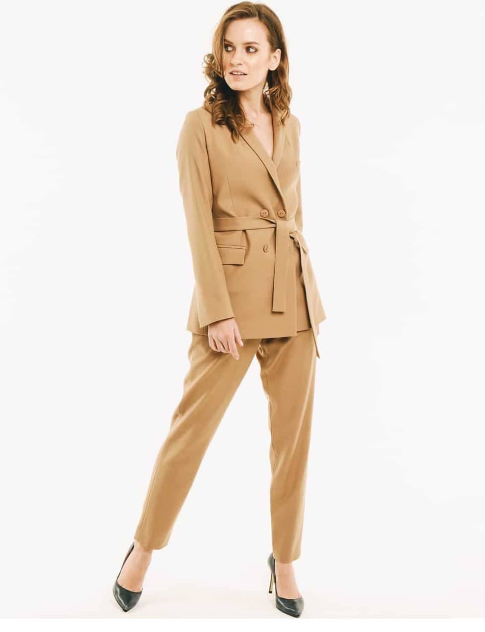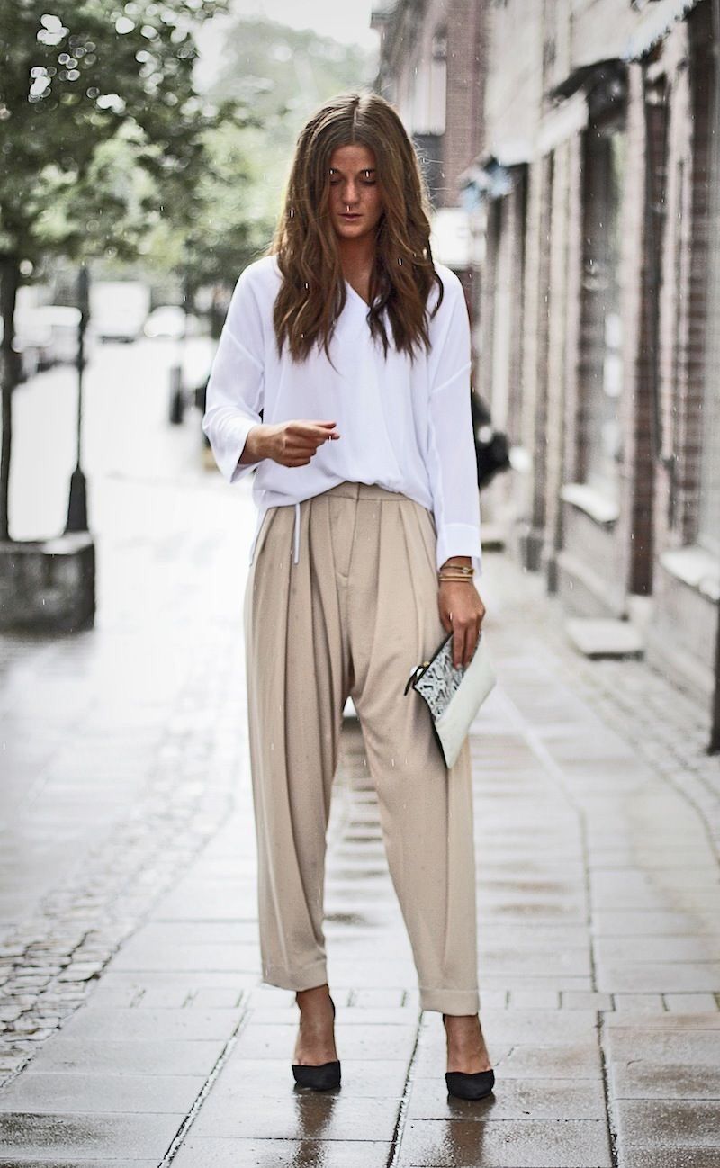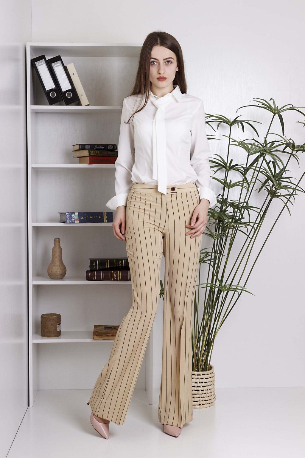 Beige trousers combined with white blouses will make you a stylish girl. And if you choose a jacket to match the look of your pants, many will notice your refined taste.