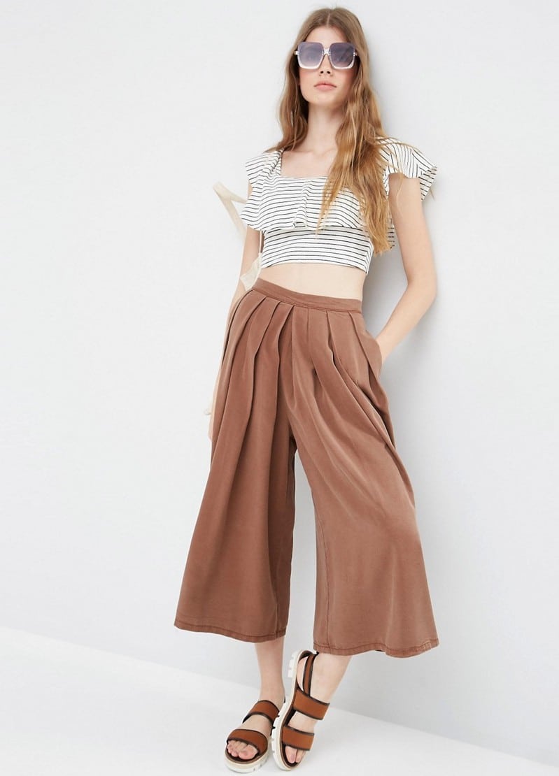 In the summer, hot time, we do not want to put on a lot of clothes. We are already very hot and stuffy. But beige pants made of silk fabric will help us to remain beautiful and stylish even in such a hot time as summer.