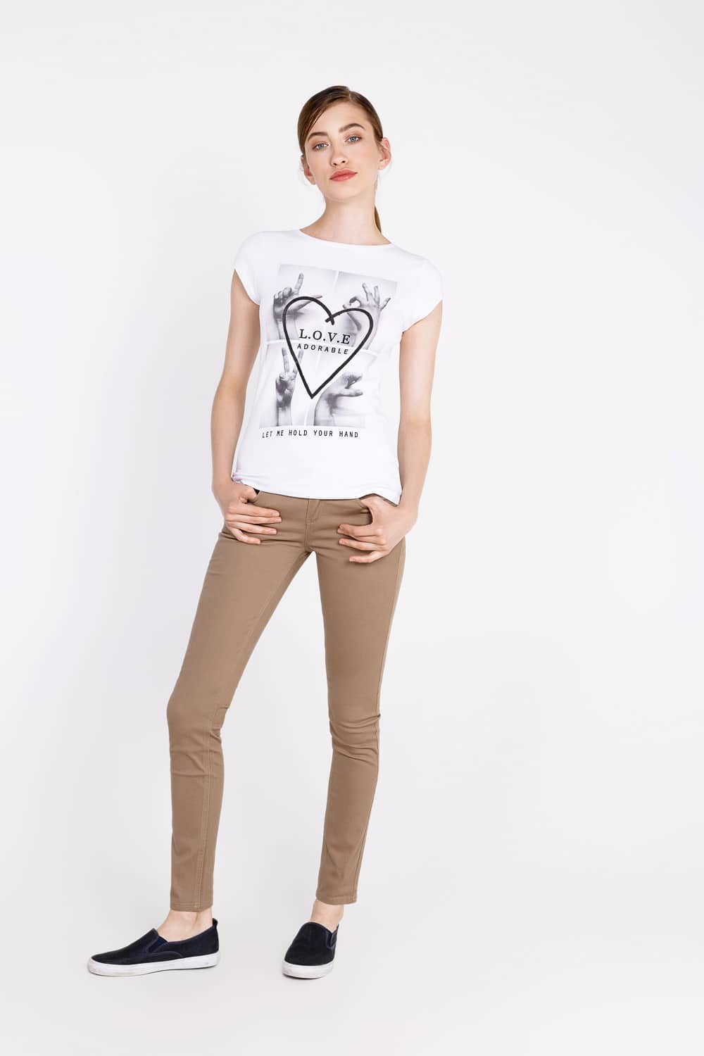 To attract attention, T-shirts in bright colors will help you. Bright colors blend well with beige and do not oversaturate the image.