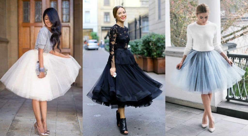 More recently, it was difficult to imagine a woman in a fluffy skirt in a bundle on the street, but now you will not surprise anyone. All because such skirts have blown up fashion shows around the world. With such a skirt, you need to wear a simple cut top, without unnecessary additions, ruffles and lace. Decorate your look with exquisite jewelry and the evening outfit is ready.