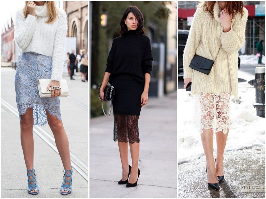 Lace midi skirts will add romance to your look. By her own, lace skirt It attracts attention, and therefore it’s quite easy to pick up the top for it. When deciding what to wear with a lace midi skirt, be guided by the only rule: the top should not distract attention from the skirt. If the skirt is bright, then the top should be calm. You should not choose bright prints and certainly, refuse an animal print with a lace midi skirt.