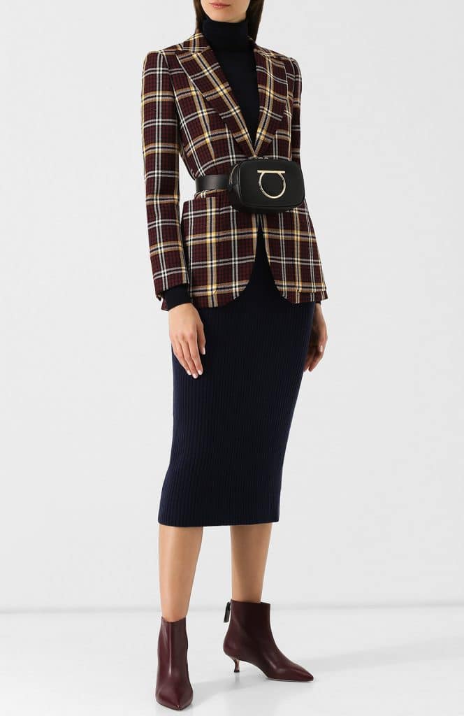 With a midi skirt, frame bags and clutches look best. If you do not need to create a business image, then a small, elegant handbag on a long strap thrown over your shoulder will perfectly complement the image.
