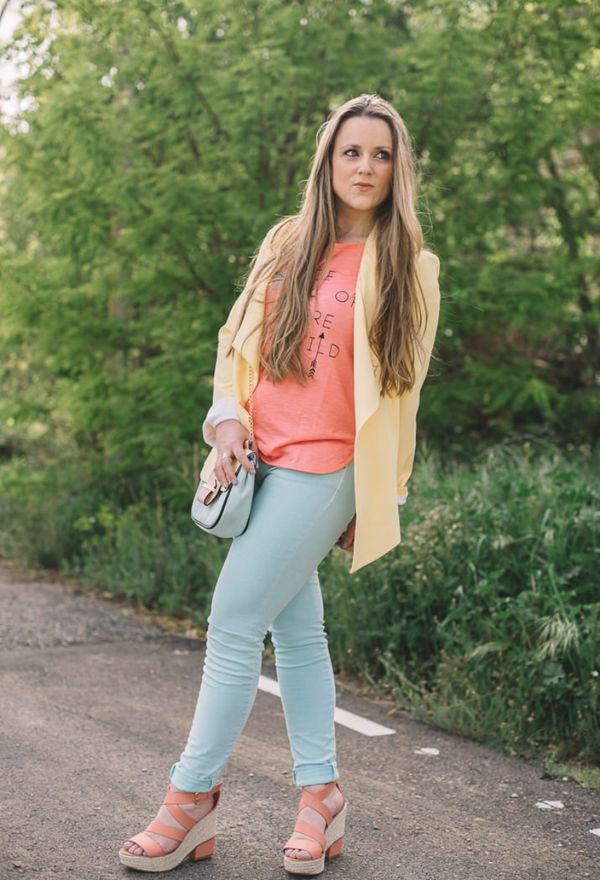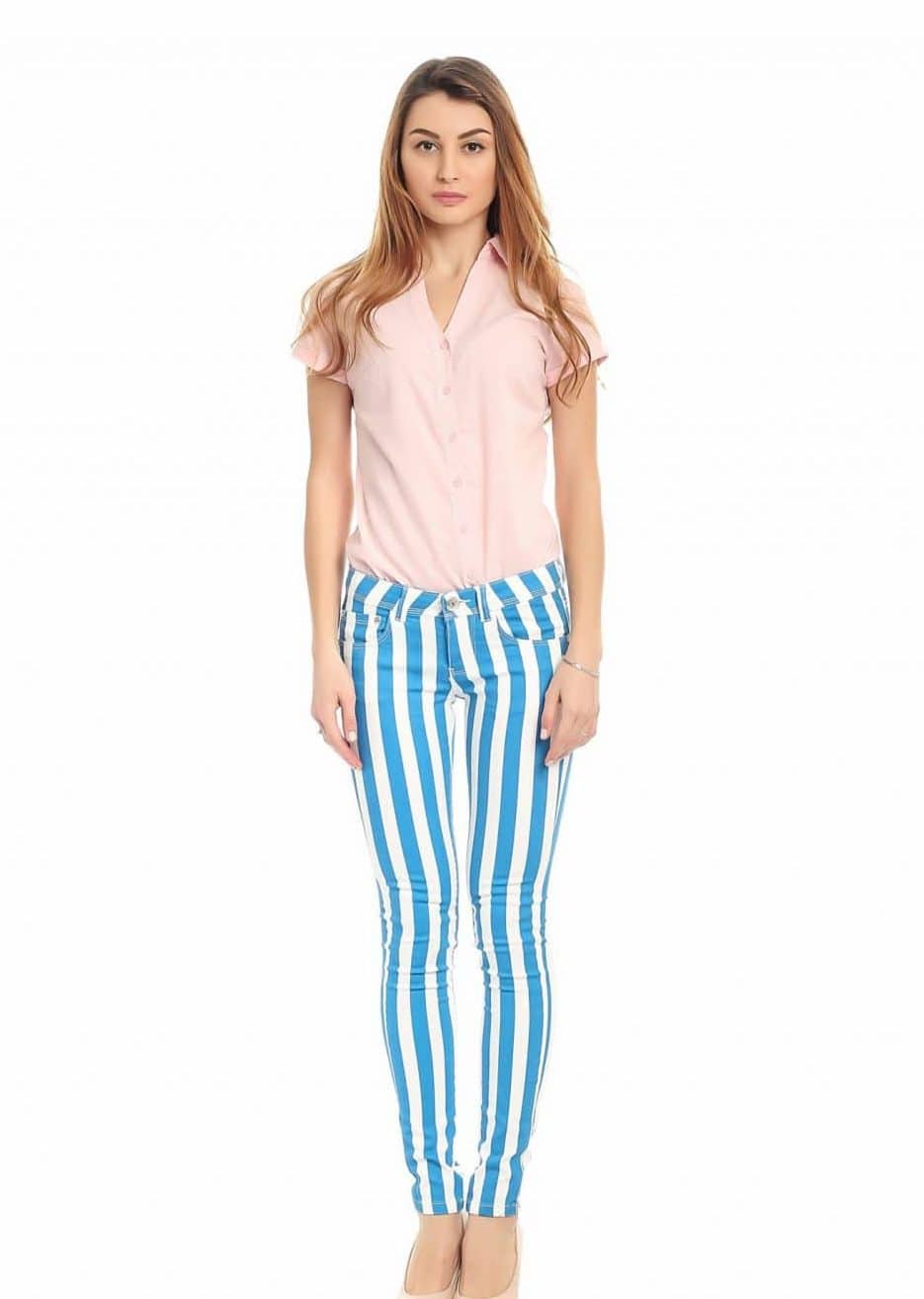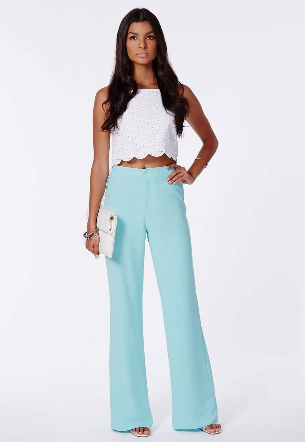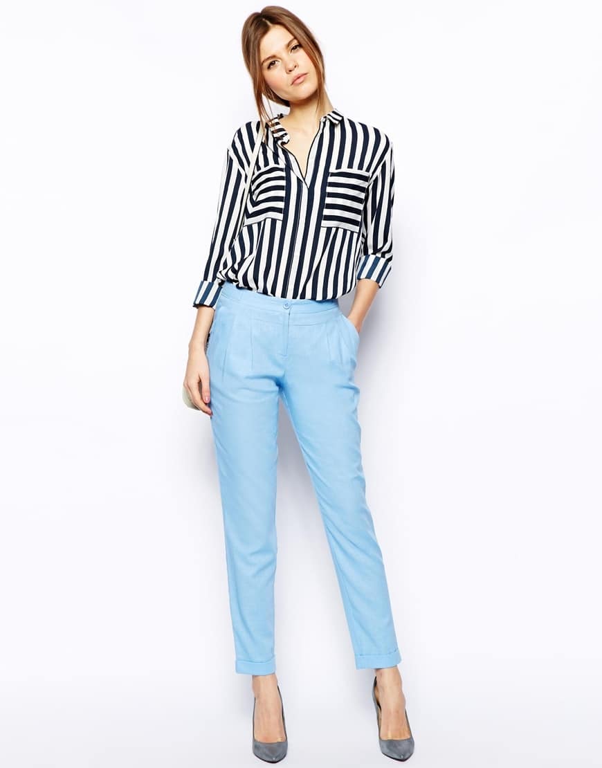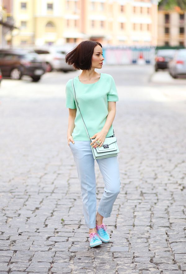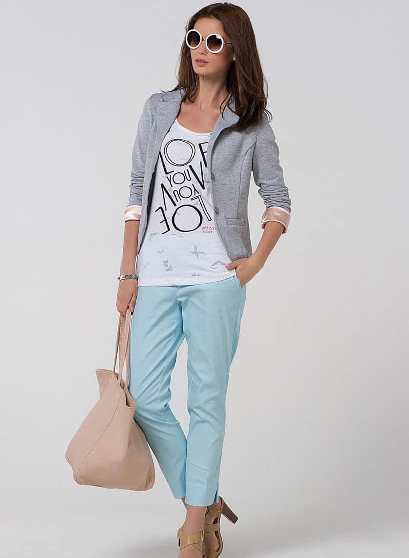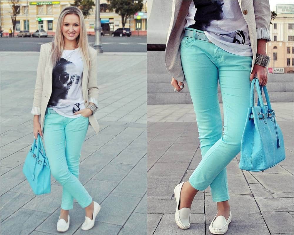 Blue trousers personify the gentle blue sky. And basically these trousers are worn in the summer, but still, many girls skillfully select clothes for such trousers that it becomes possible to wear them in colder times.