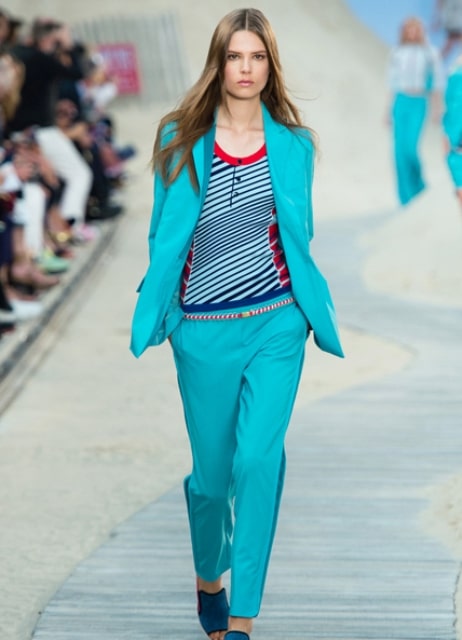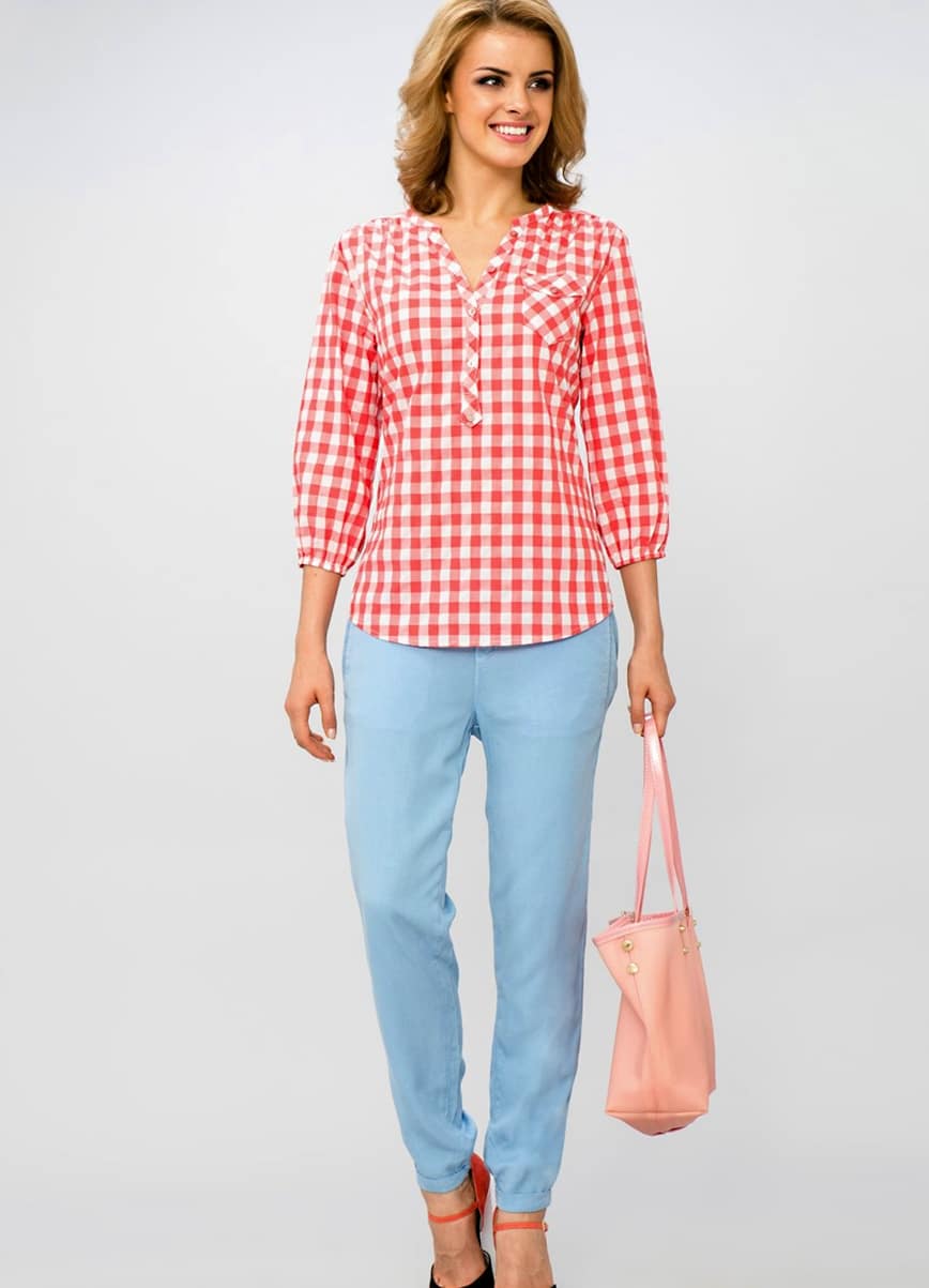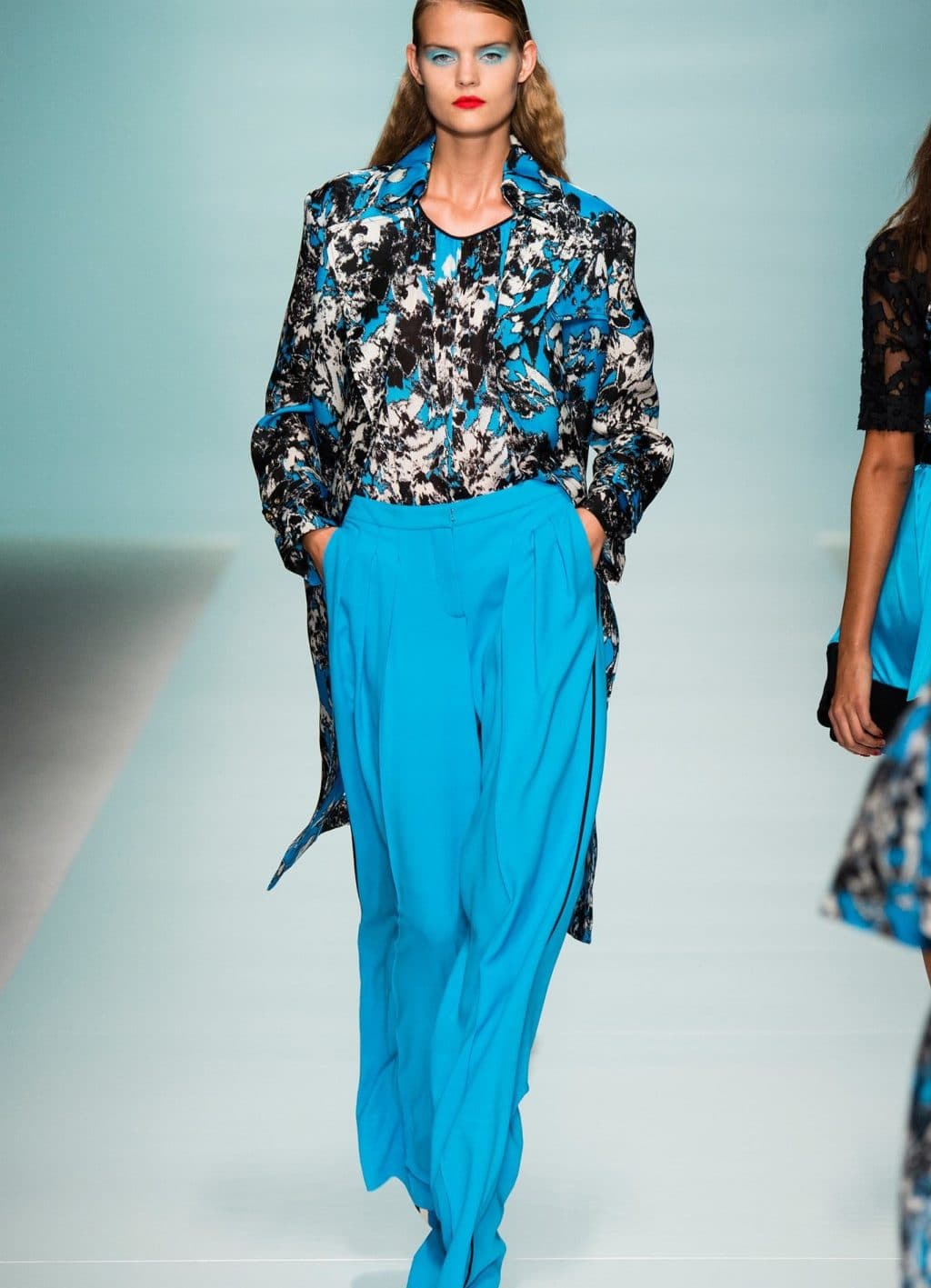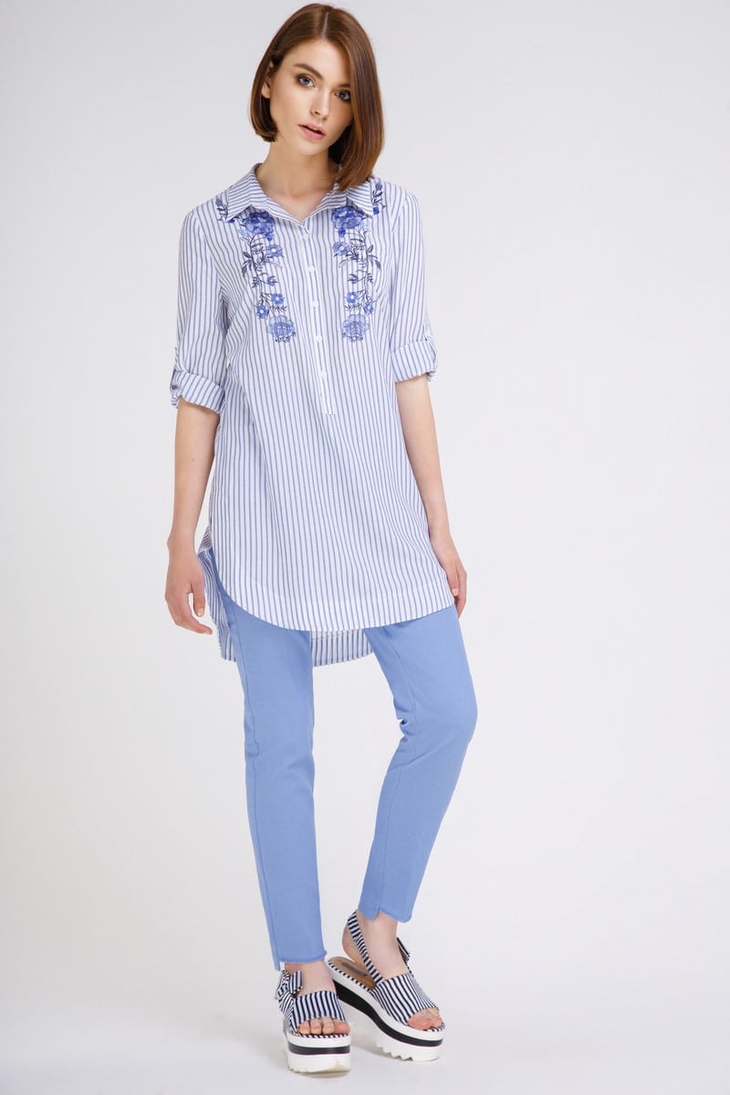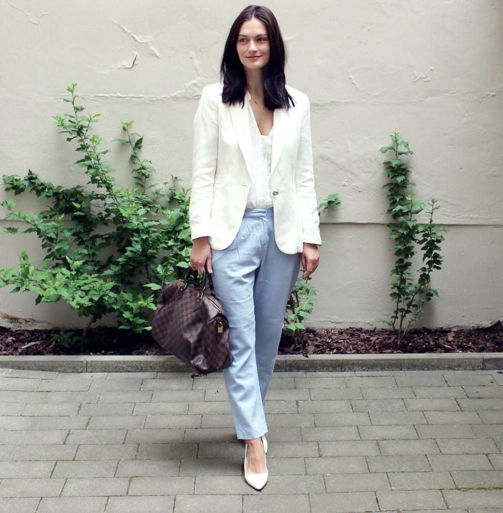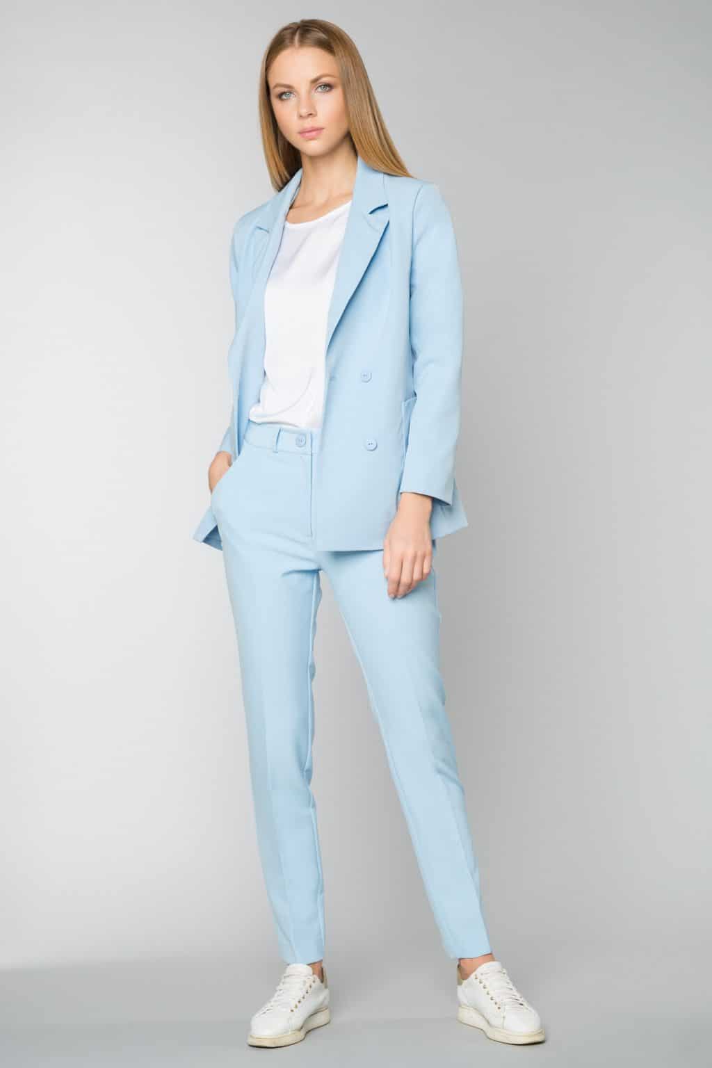 You are going to work and would like to dilute the office dress code with a bright, but at the same time stylish way, then blue trousers will help you.