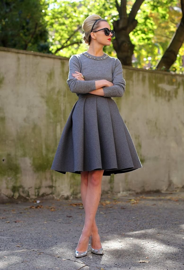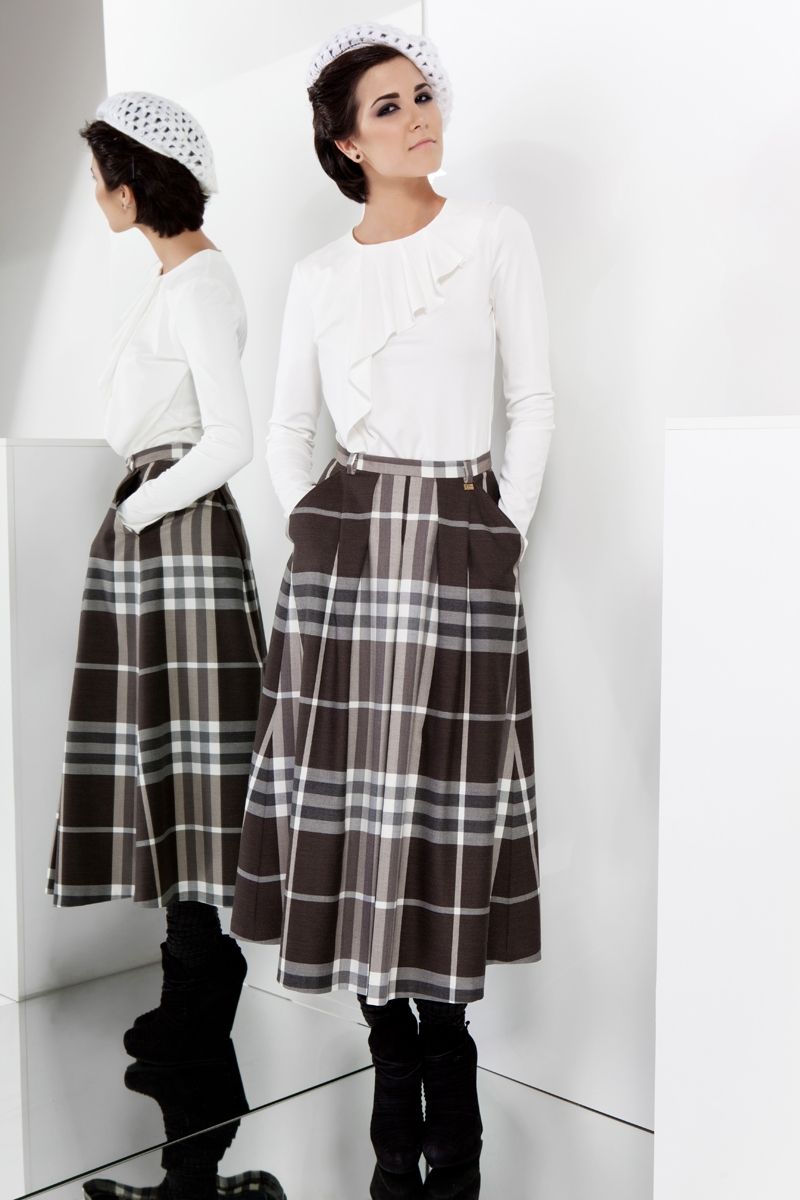 In rainy autumn weather, it will be a good decision to put on ankle boots or boots under such a skirt.