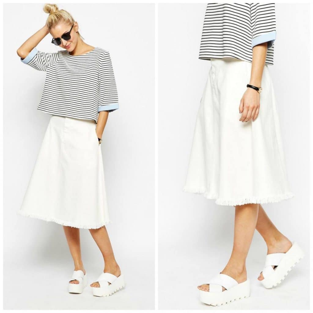 With such a skirt, one of the best decisions would be to put on pumps or sandals. They are perfect for a summer look.