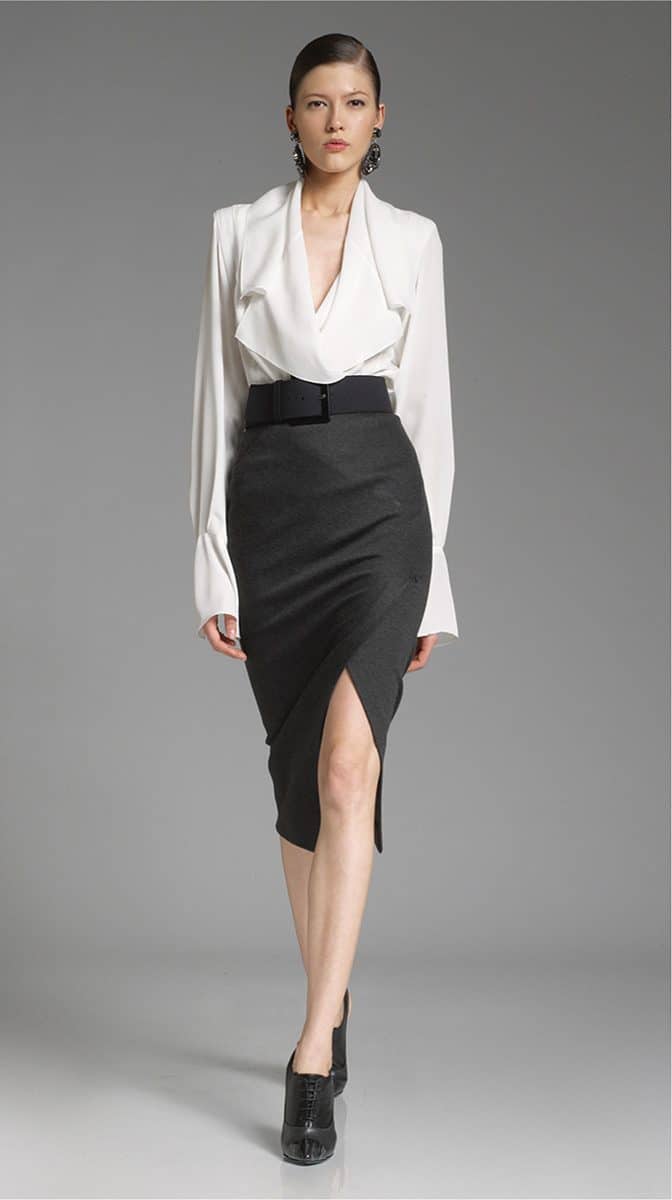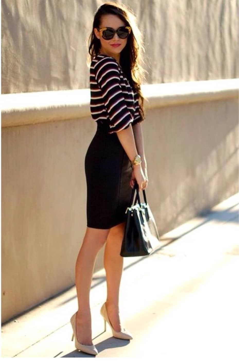 A pencil skirt is an indispensable item in the wardrobe of business women. This skirt perfectly emphasizes your hips, making the bending line even more noticeable.