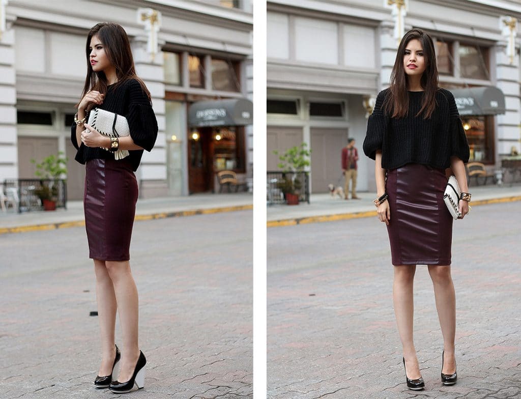 In a cooler season, boldly wear boots, over the knee boots or ankle boots under such a skirt. They are in perfect harmony with a pencil skirt and your image will be even more attractive.