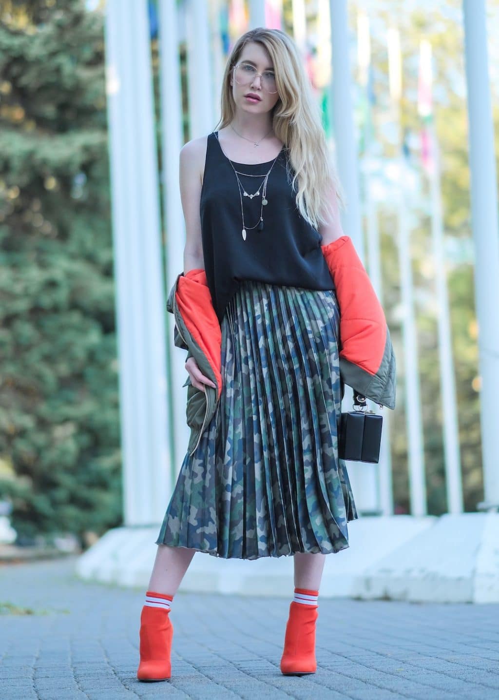 If you are a very active girl, then it will be for you the ideal solution to wear sneakers under such a skirt. You will be as comfortable as possible and at the same time you will remain beautiful and attractive.