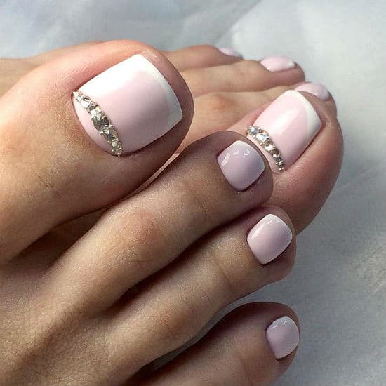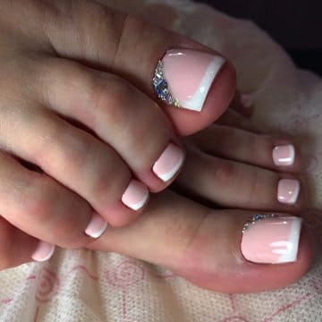 French pedicure is almost as popular as manicure, so it is not surprising that, with manicure, it has undergone quite a few changes. Now this is not just a standard smile. The smile itself can be of the most intricate forms, in addition, decoration will not be amiss. You can decorate the French pedicure with an intricate pattern, original sculpting or with all your favorite rhinestones. A smile doesn’t have to stand out from the main background, you can even make it in one color by changing only the texture: the mixture of mat and gloss of the same color looks simply stunning.