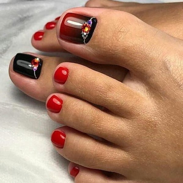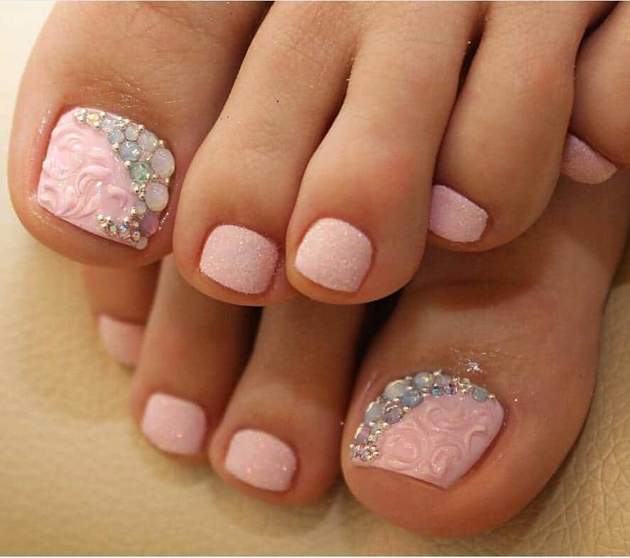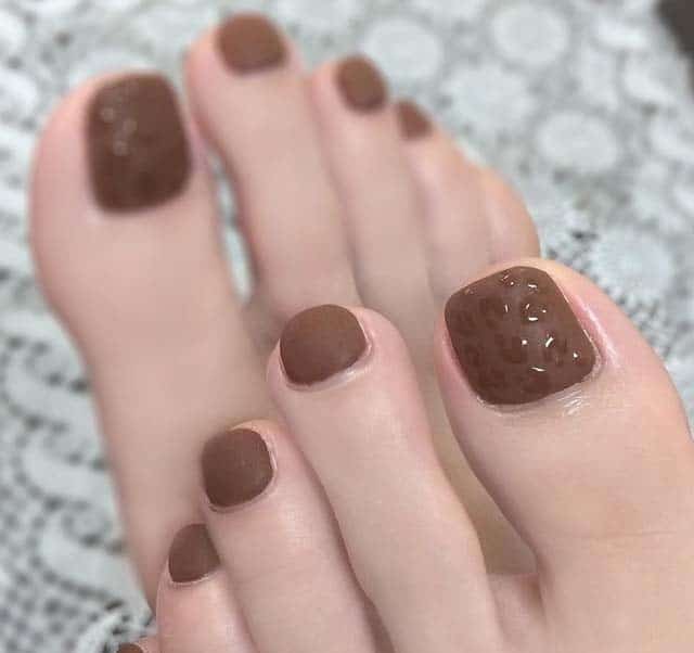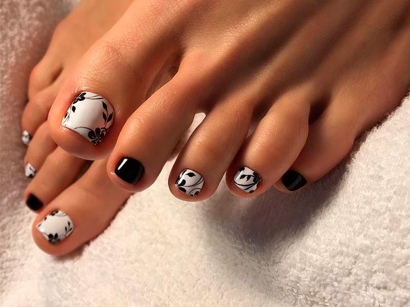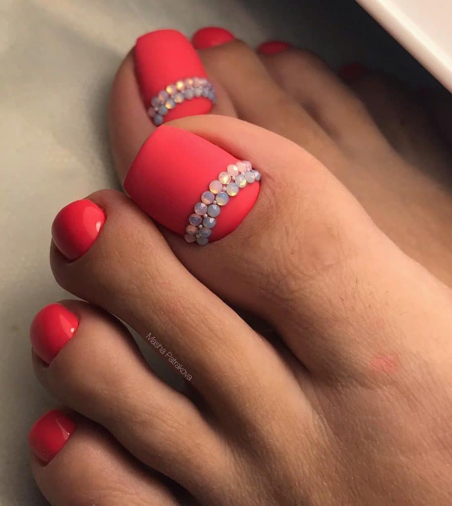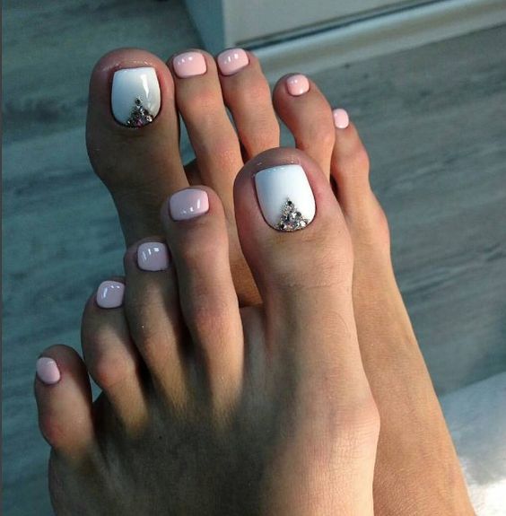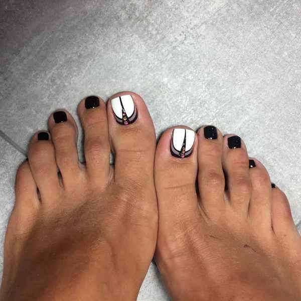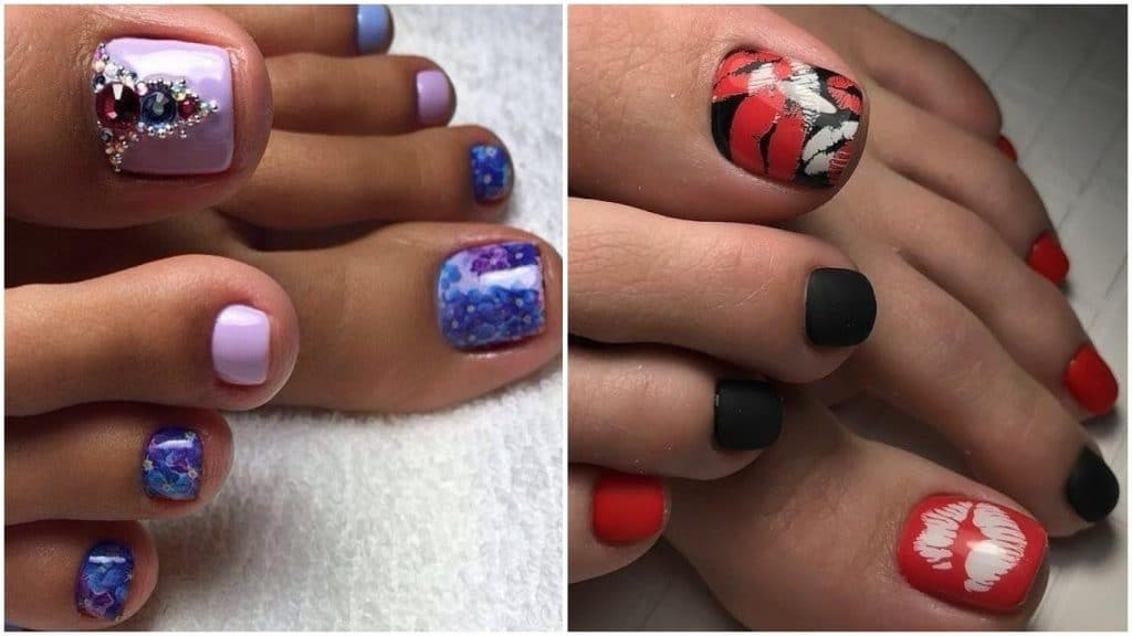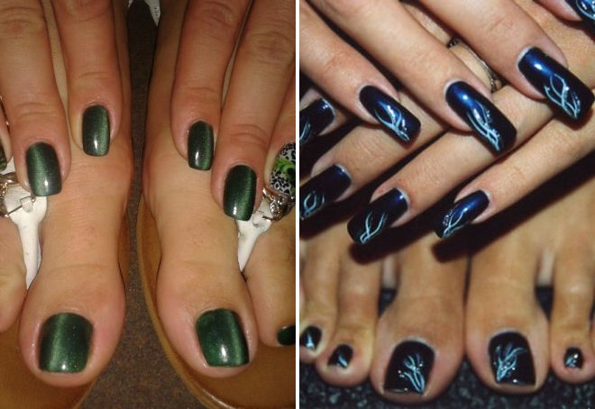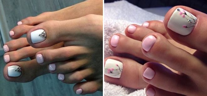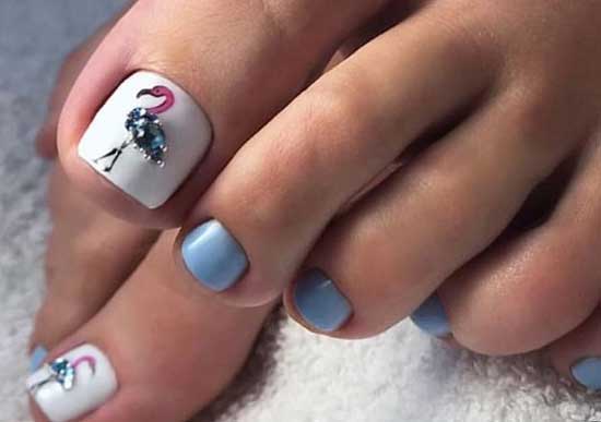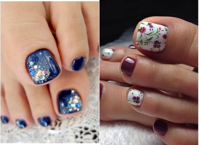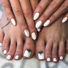 When choosing a pedicure for yourself, remember that the times when it should have coincided with manicure are long gone, but they must be in harmony. You can play with colors and textures, experiment with shades or drawings. For example, you can make a matte pedicure and glossy manicure of the same shade or choose the usual monophonic coating, but in different shades. One fingernail can be distinguished, but not on the legs, or vice versa. Just make it a rule that pedicures and manicures should look like twins, but not like twins.