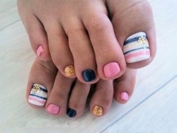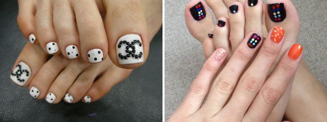 Thematic pedicure is one of the most interesting. It can be done at any time of the year, the main thing is to adhere to a given topic. To complete the image, it is necessary that the theme of the pedicure corresponds to the manicure, otherwise it will look stupid and not logical. The most fashionable themes are of course festive, for example, New Year's theme or Easter. If you are going on vacation, you also need to take care of the beauty of your legs: in this case, marine or Egyptian themes are suitable, depending on your plans. By Valentine's Day, you can decorate the legs with hearts. Let your imagination tell you interesting topics for pedicure.