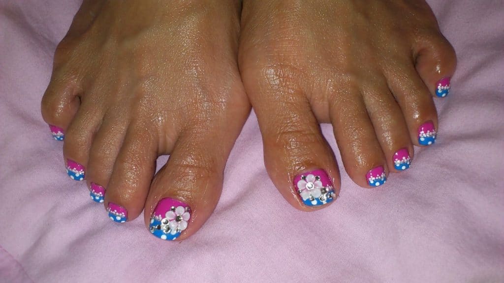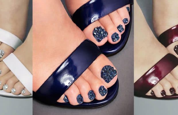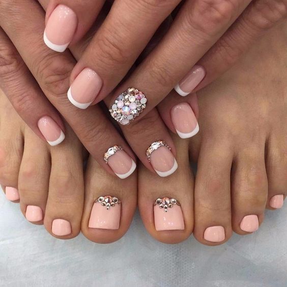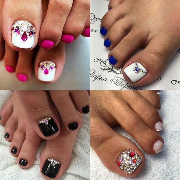 Rhinestones are able to decorate any pattern, make a sparkling highlight in any technique of decorating nails. This is one of the few nail design elements that can be used with anything. However, it will not be fair to regard rhinestones, only as an addition, because a skilled master is able to create a real masterpiece using only rhinestones and nothing more. With the help of rhinestones, you can lay out the most beautiful drawings on the nails, just a few rhinestones can turn an ordinary pedicure into a festive one.