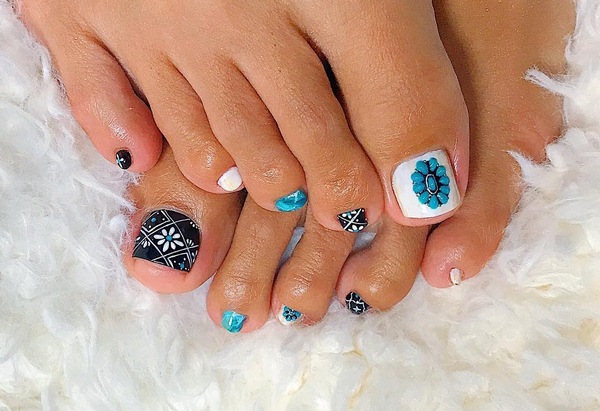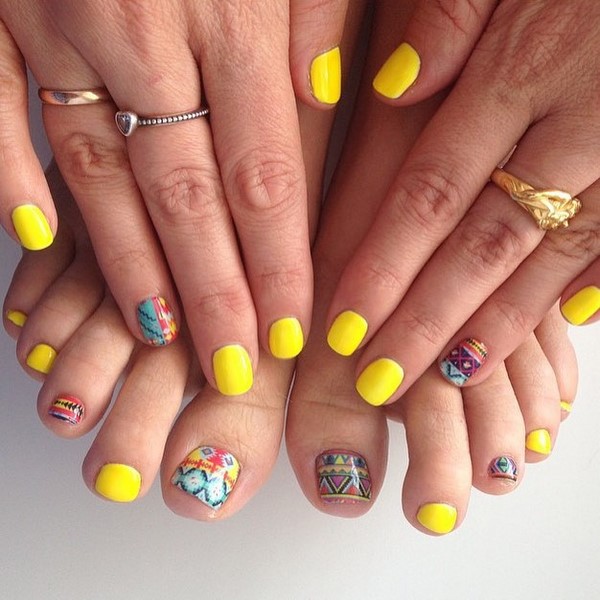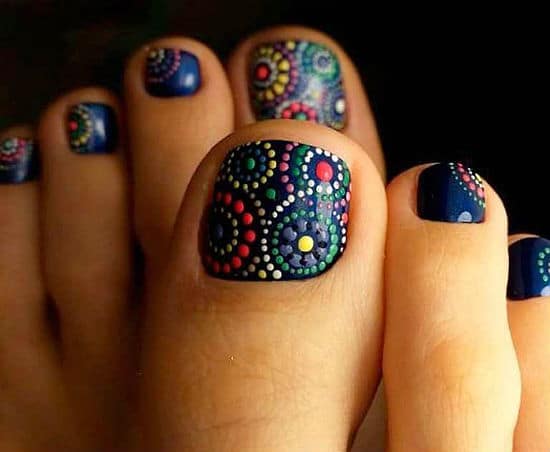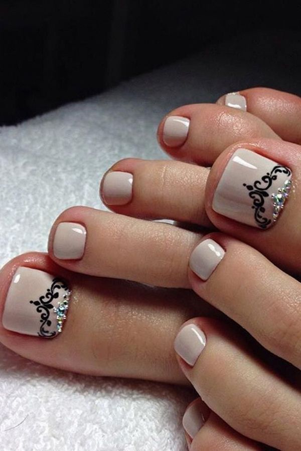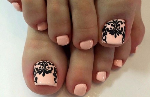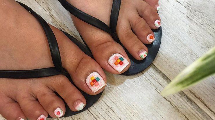 The invariable decoration of your legs will be the ornate patterns on the fingers. It is not necessary to make a drawing on all the fingers, quite large enough. Patterns can be very different from ordinary curlicues to ethnic patterns. You can use the stamping technique if you want to make the patterns absolutely identical or draw by hand. A pedicure with patterns will be relevant at any time of the year. Drawing patterns on nails is almost the oldest decoration technique. Naturally, every season brings something new to this technique, preventing it from being forgotten. Every year, the patterns are becoming more original, bewitching and unpredictable, it remains only to follow and keep up with the trends.