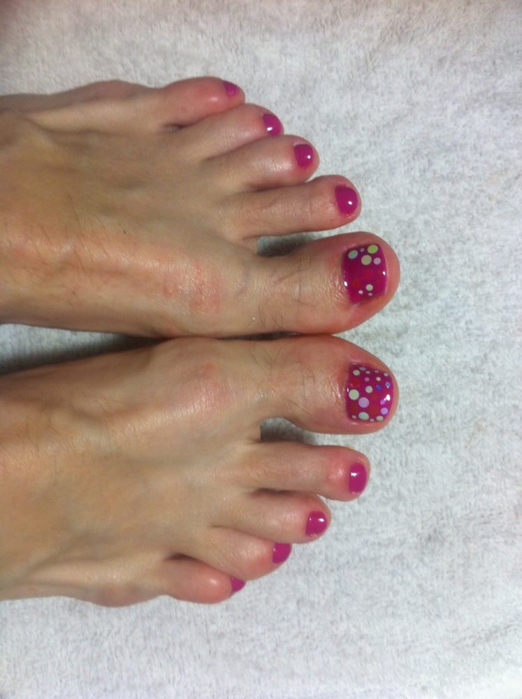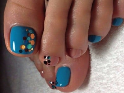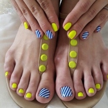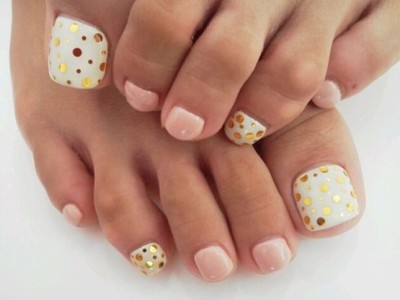 Such a pedicure is suitable for a holiday, as well as for a regular walk, it will look great with a trapezoidal skirt with polka dots.