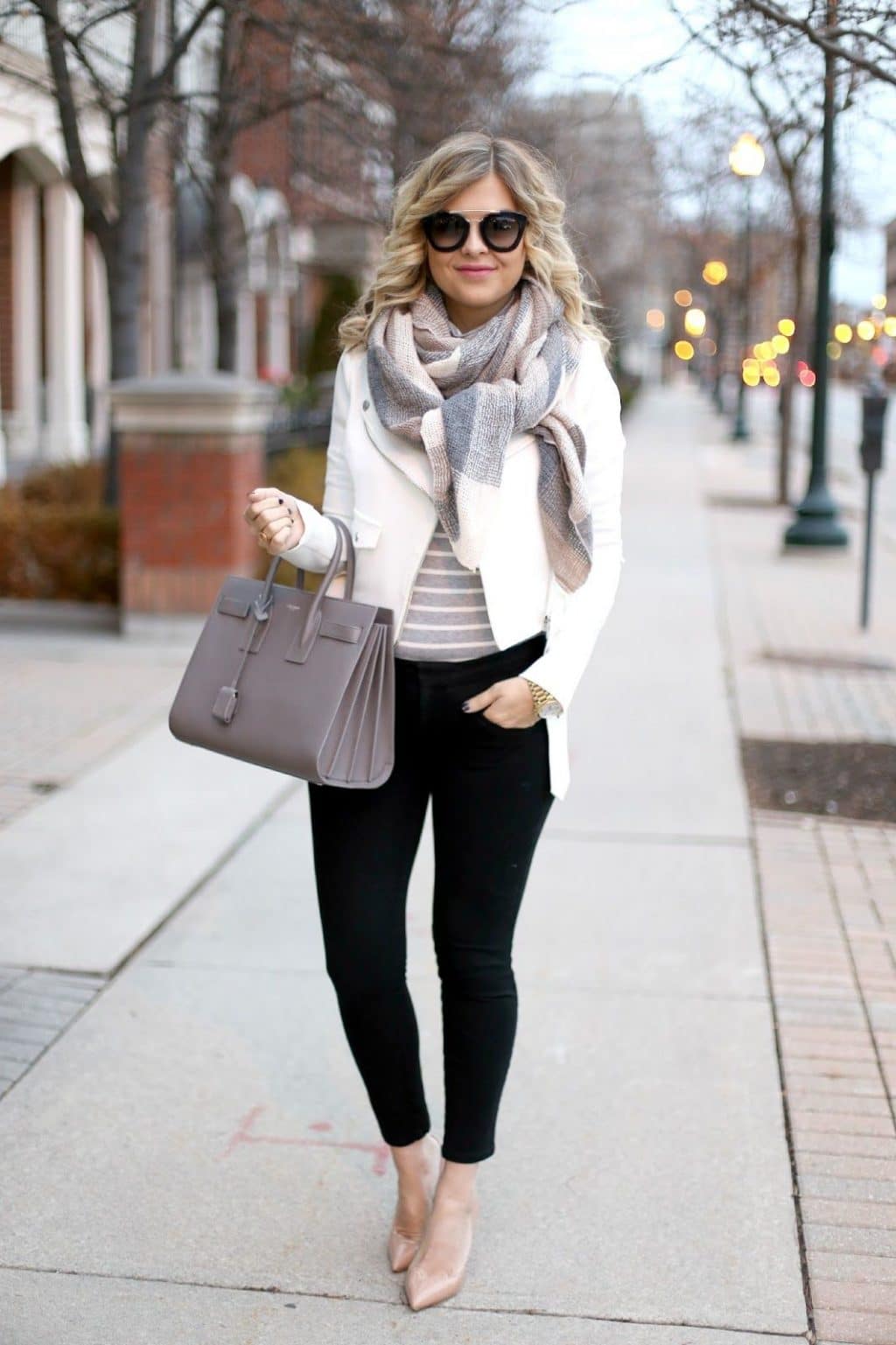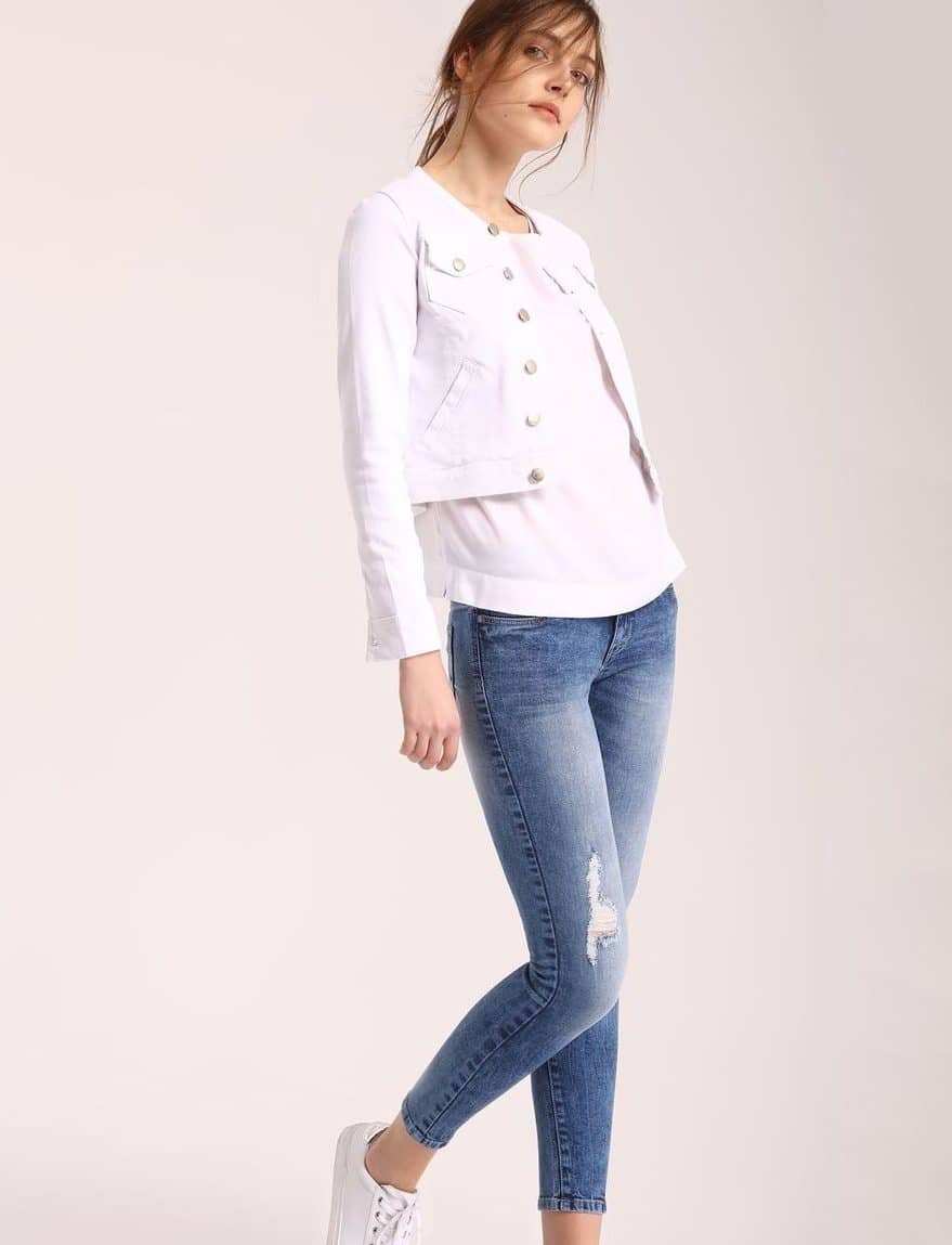 If you are choosing skinny jeans, a fitted jacket is a great choice for them.