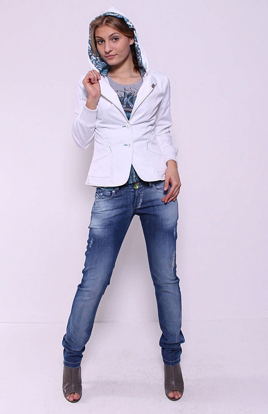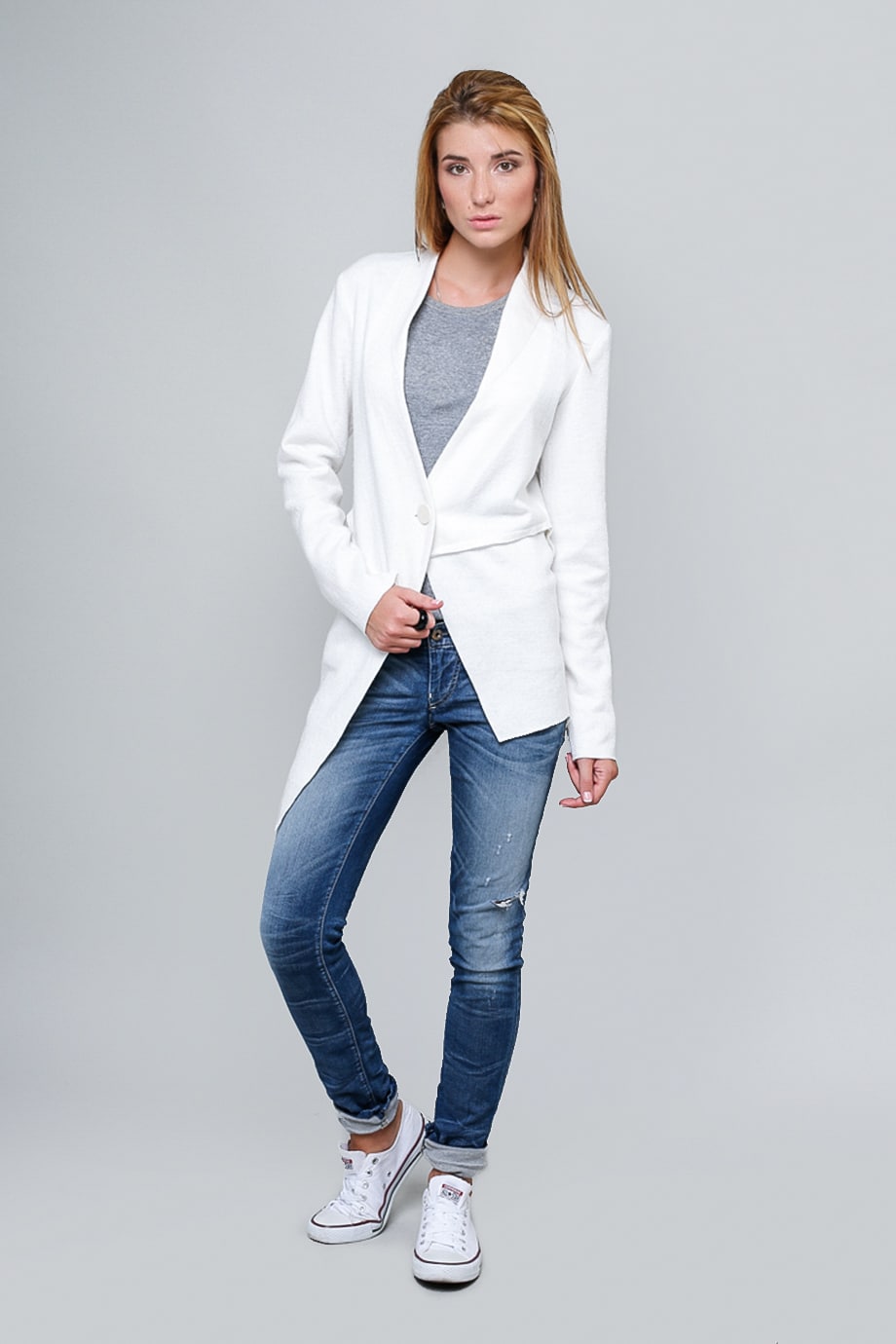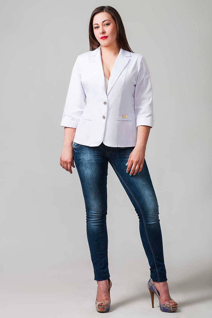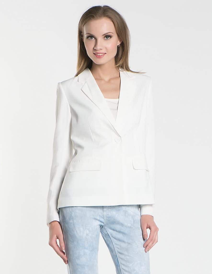 When it gets warm outside, but not yet enough to walk in one jacket, a jacket replaces the jacket. The white jacket is stylish and elegant. It can be worn, both in spring and summer. And in colder times, you can put it on under your jacket when you go to work.
