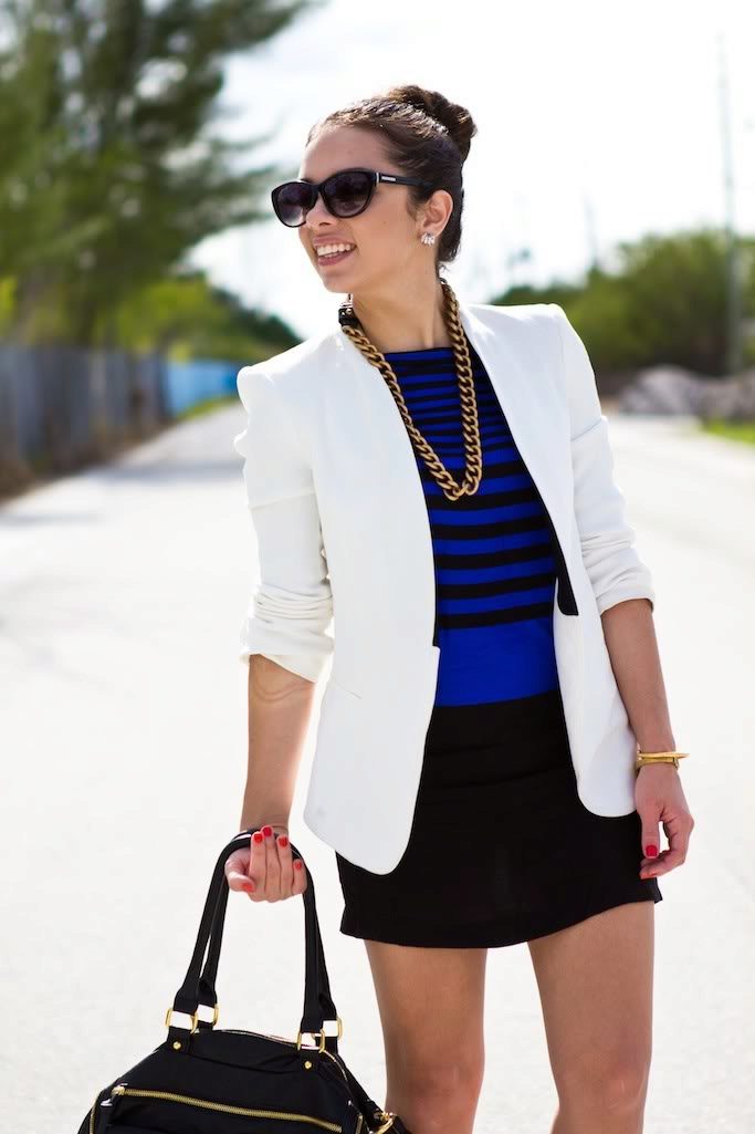 A white jacket with skirts can be worn both in a buttoned-up look and in the open. The main thing is to choose the right style of skirt and jacket. For narrow pencil skirts, fitted jackets are best suited, for wider, wider ones.