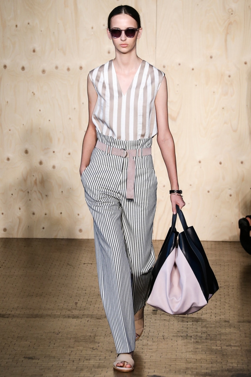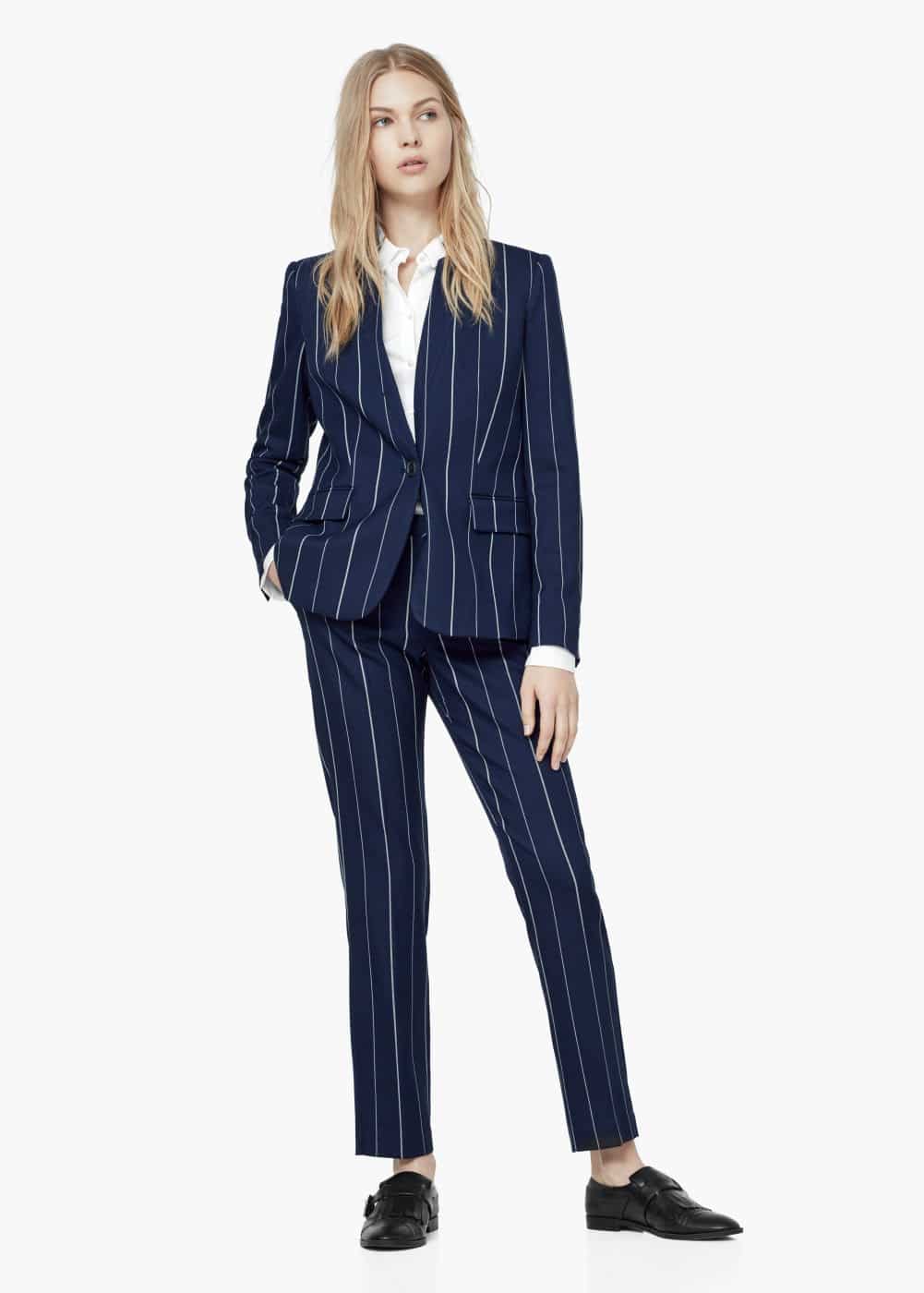 For such trousers, it is usually easy to pick up a jacket in the same striped gamut. And a great pantsuit is ready.