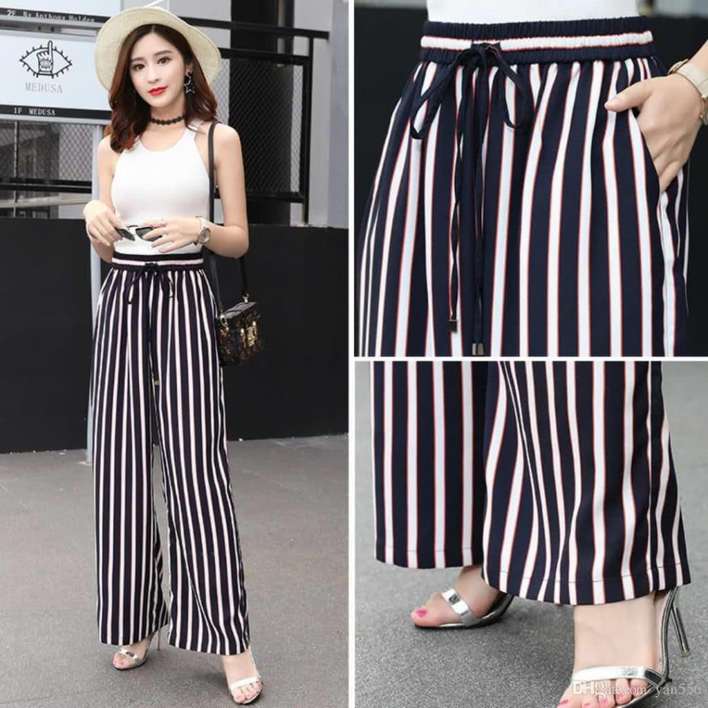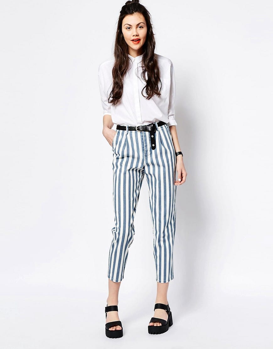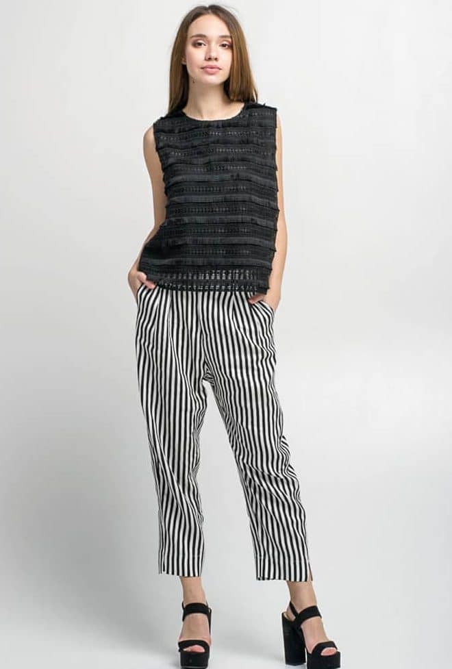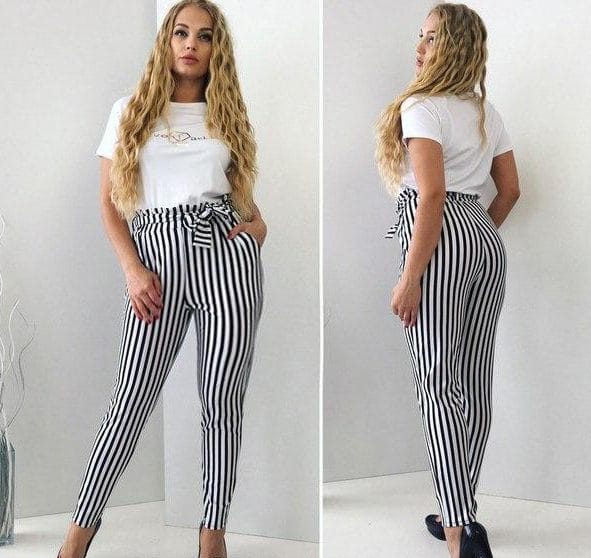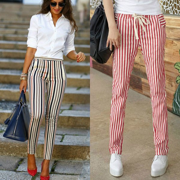 Striped pants are a fashion hit of spring and summer. Having these pants in your wardrobe, you can always remain bright and original.