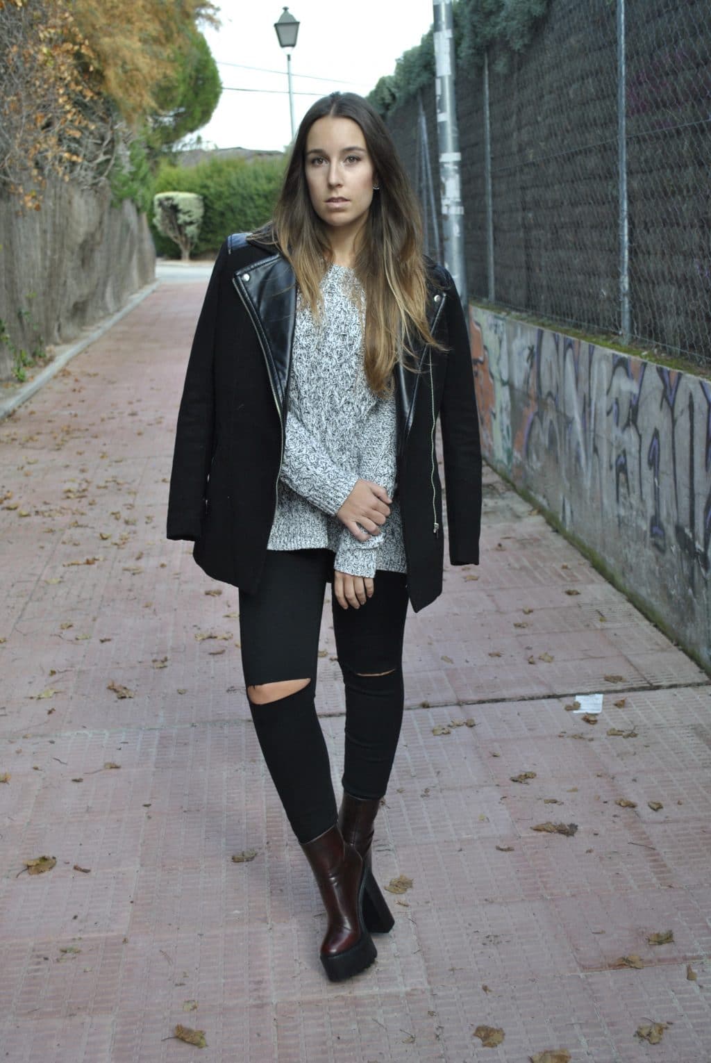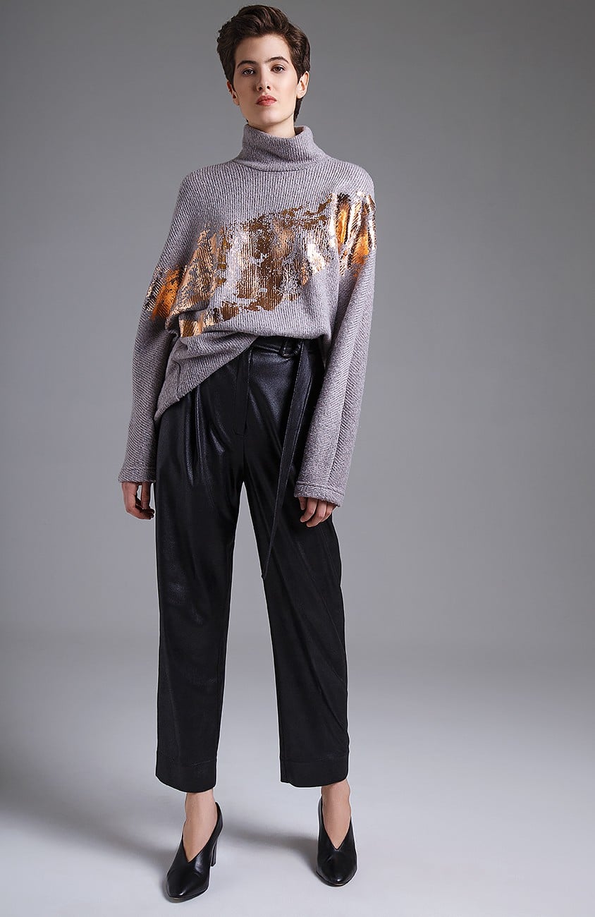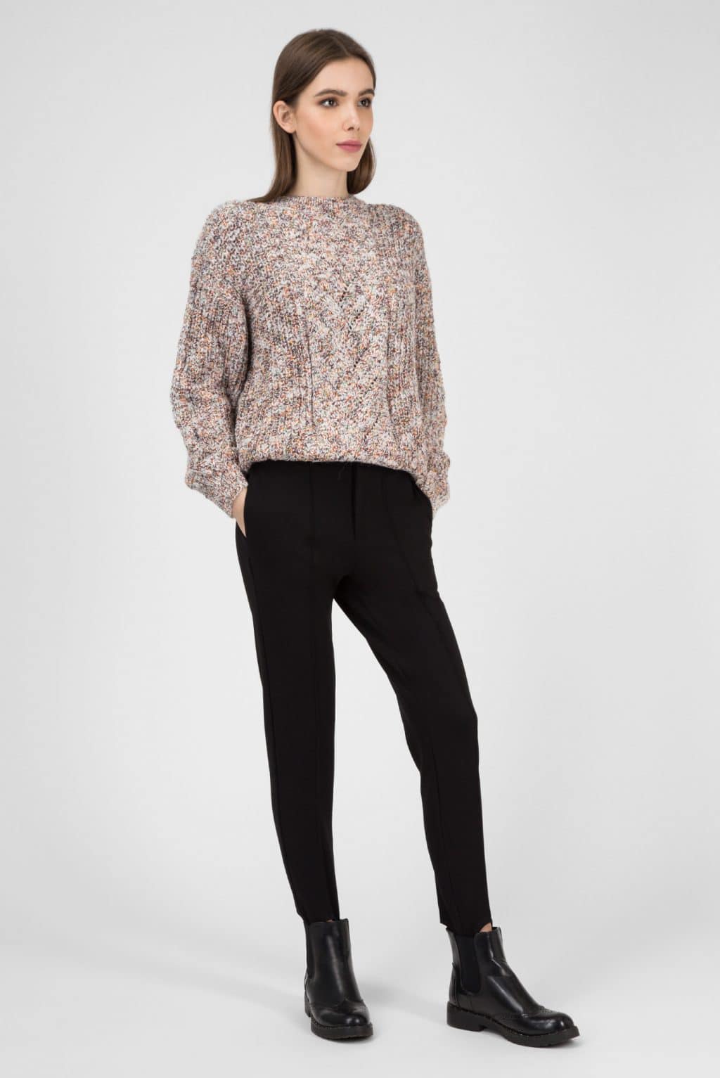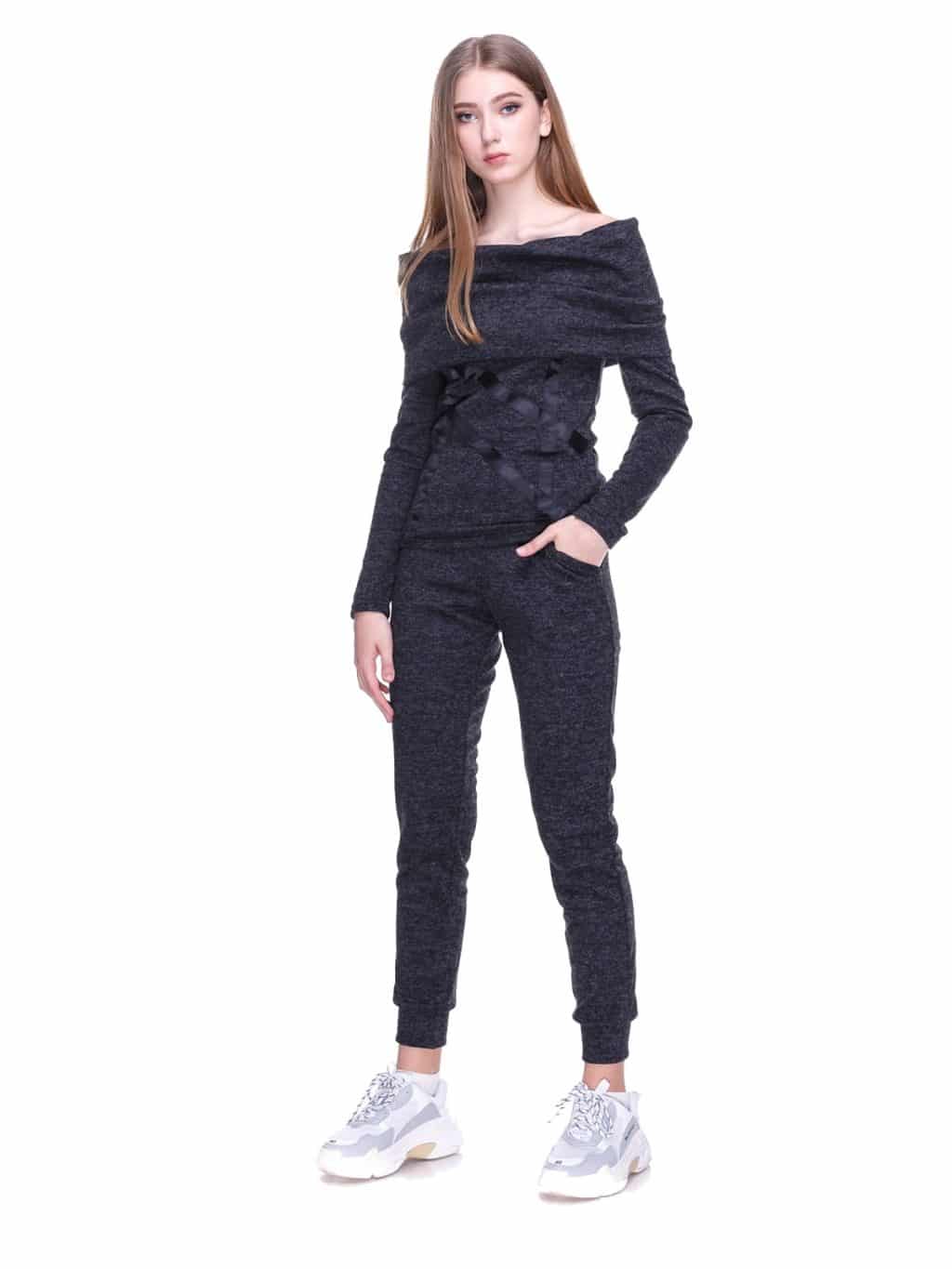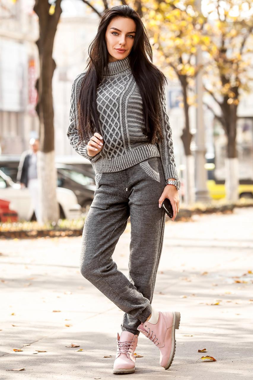 Gray sweaters are in perfect harmony with black or gray trousers. Shoes in a universal color to complete the picture.