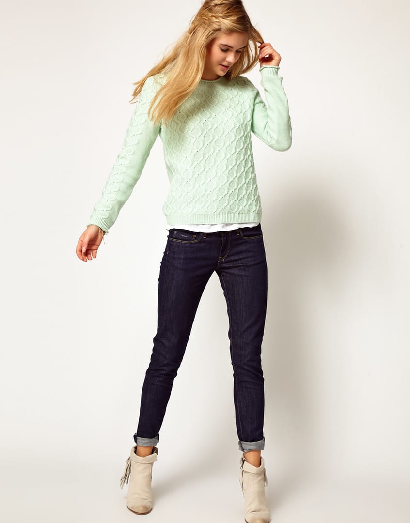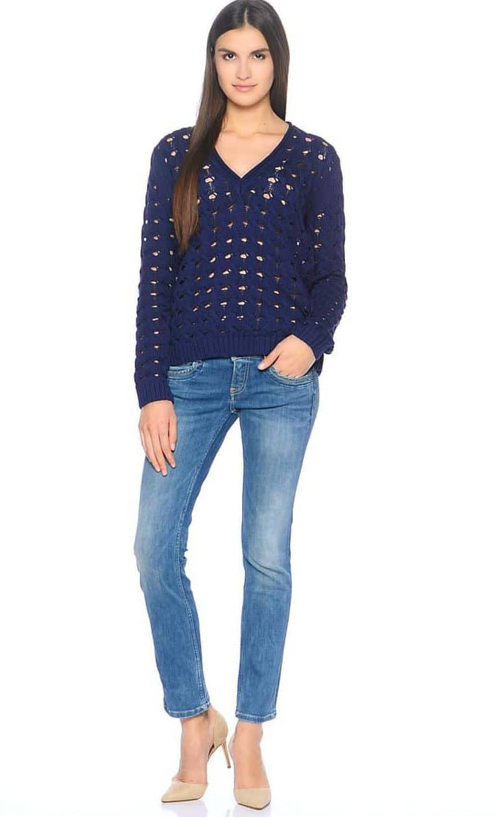 Jeans are a very practical thing that can be worn not only in summer. It is very easy to choose a sweater for them, and he always sits in such a combination perfectly.