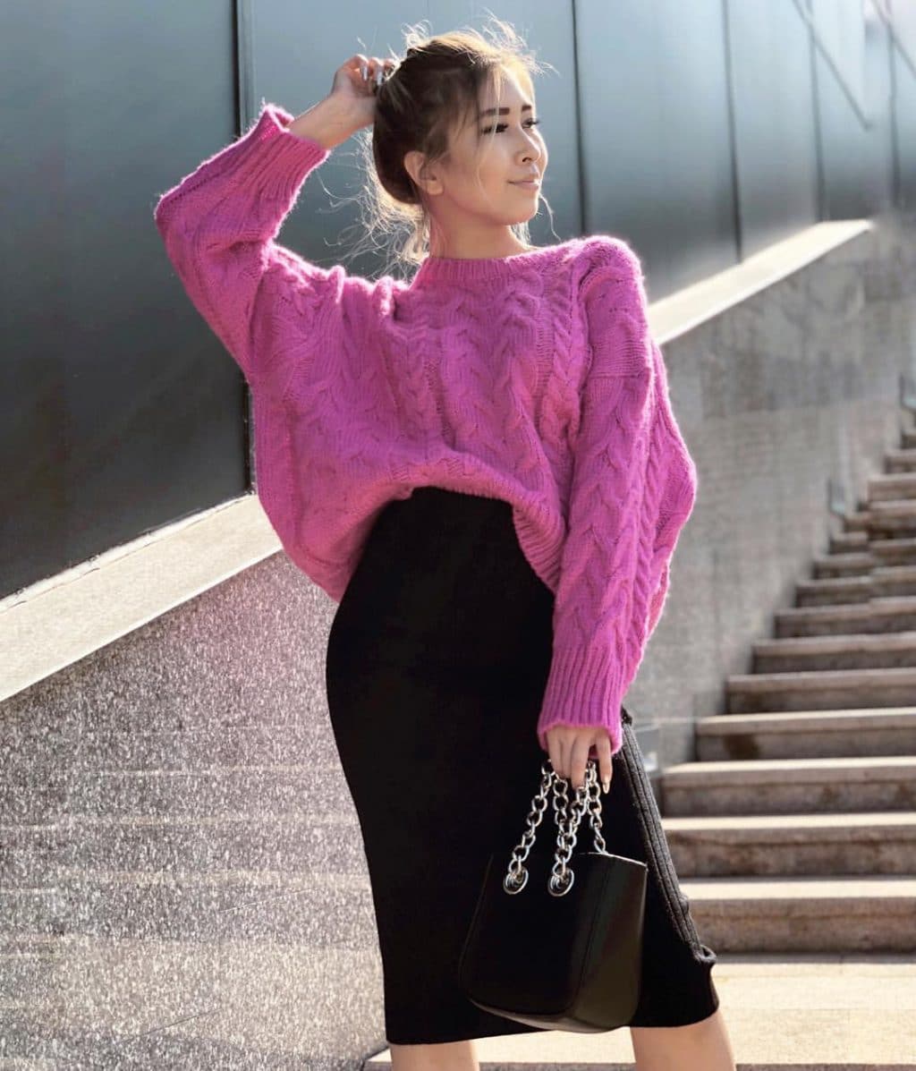 To create an oversized style, you will need an airy skirt and the same airy sweater. In some cases, the skirt may be straight.