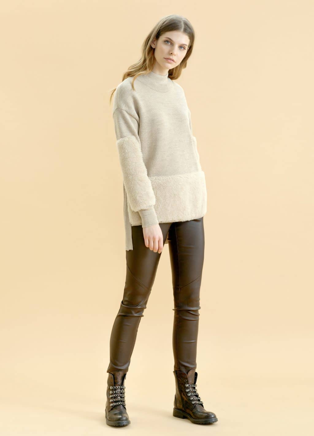 Regular, not knitted sweaters with a light print, you can combine with trousers, both in the color of the sweater itself and in a different pastel color.