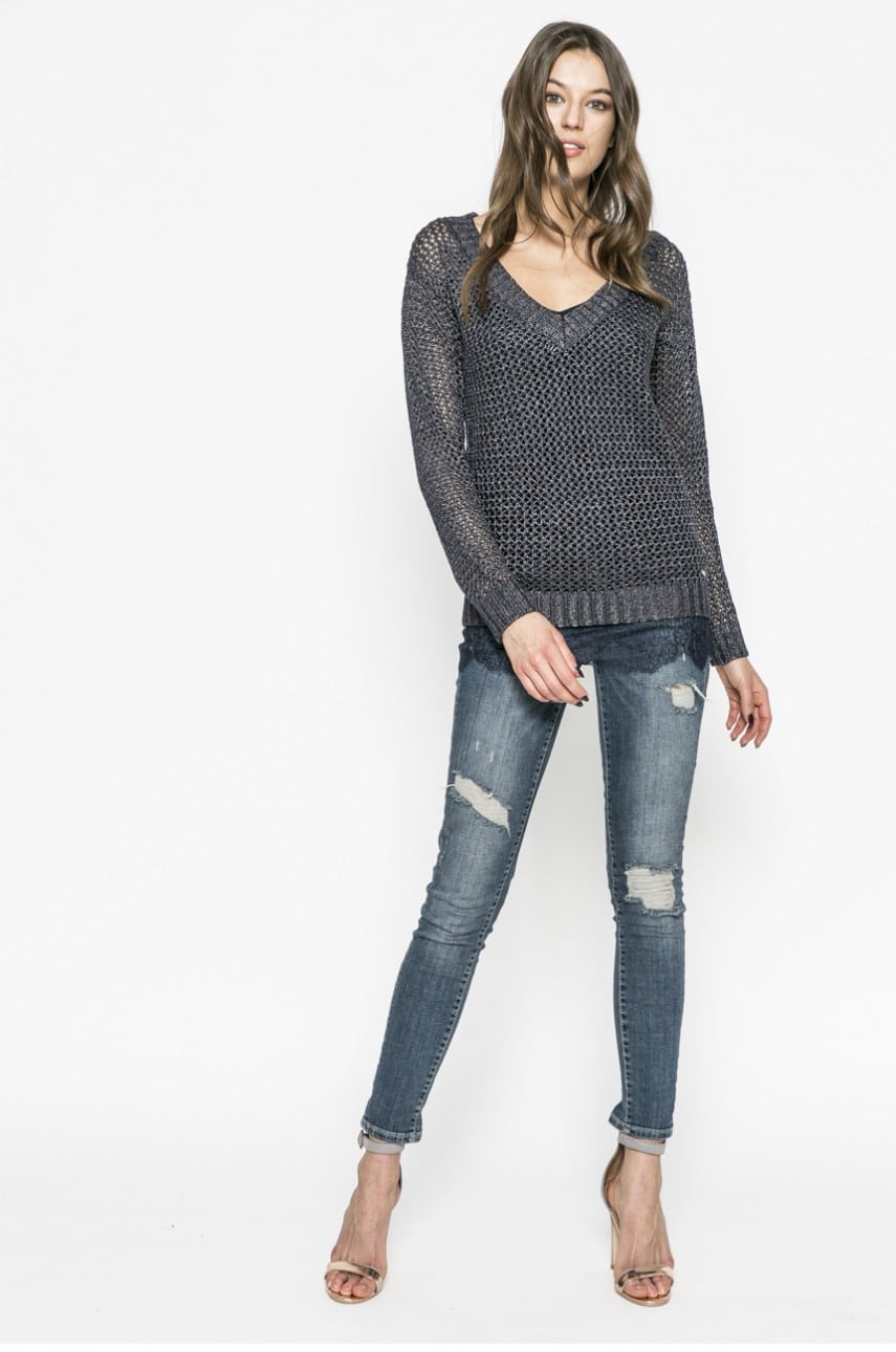 Basically, jeans for sweaters in the cool or cold season, are chosen in a dark tone. Dark blue or black, this is the color that will work best for fall or winter. Under this color jeans, sweaters in gray, black, pale blue or cool bright colors are well suited.