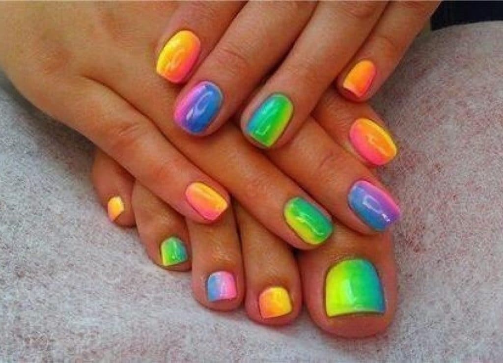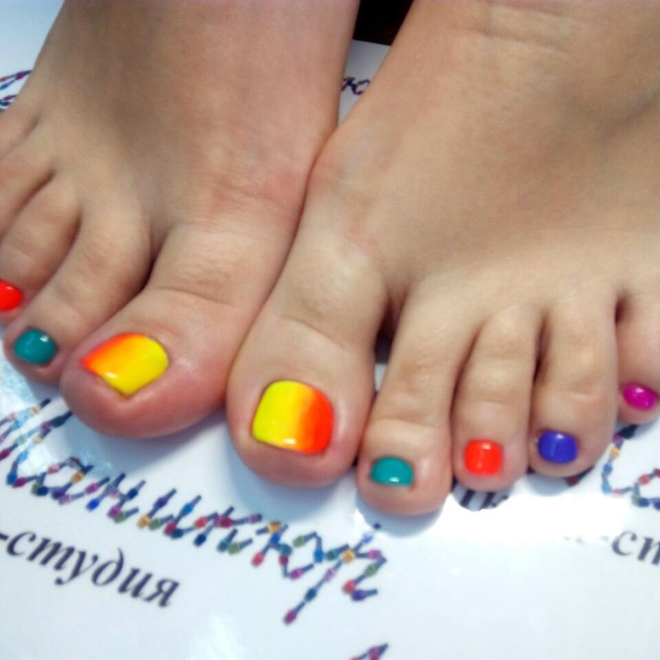 Rainbow pedicure is an entirely summer design. Of course, such a pedicure is not suitable for everyone, but if you do not need to adhere to a strict dress code and want to add colors to your life, then this pedicure is for you. The name speaks for itself, this technique is a transition from one to another of all or several colors of the rainbow, as well as the alternation of the color of the nails.