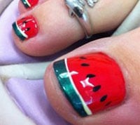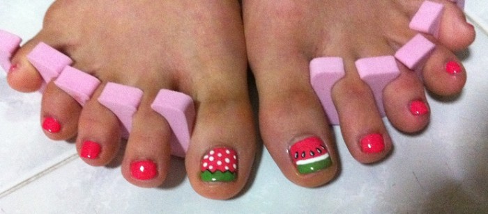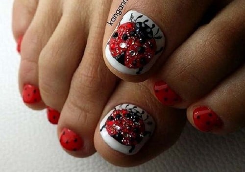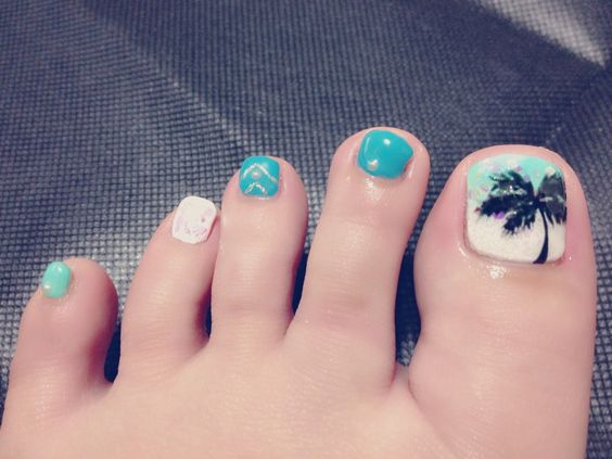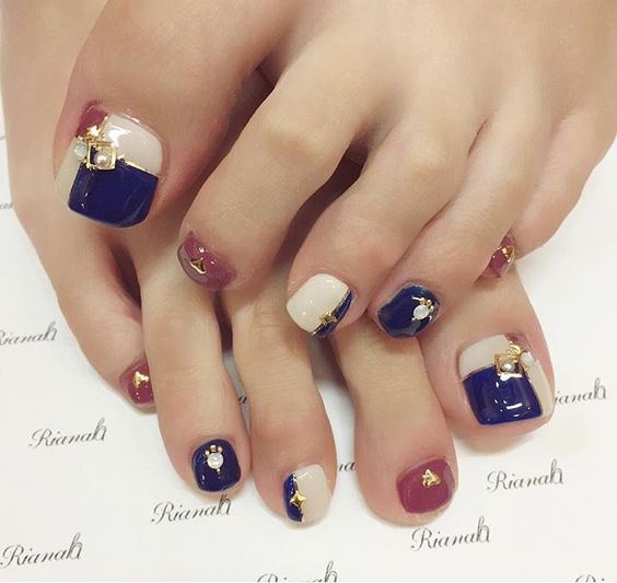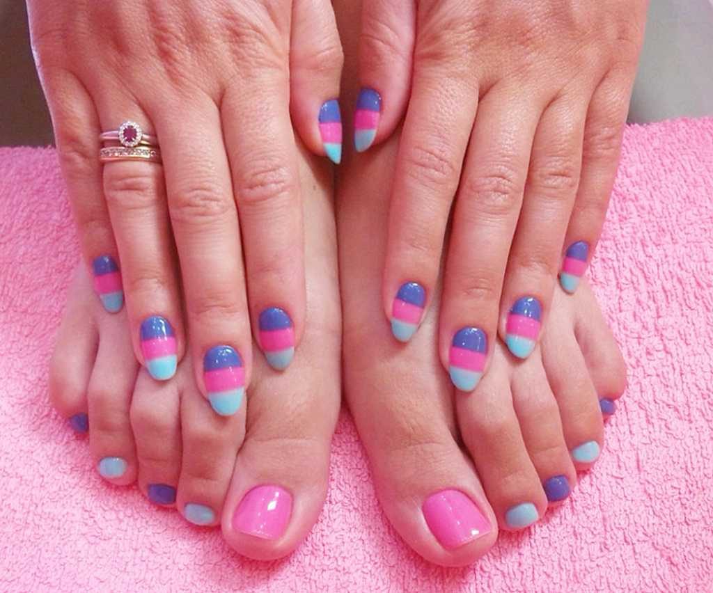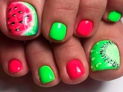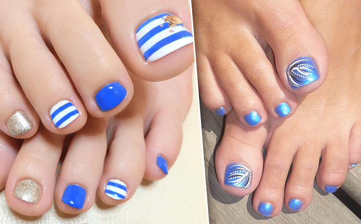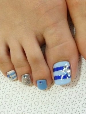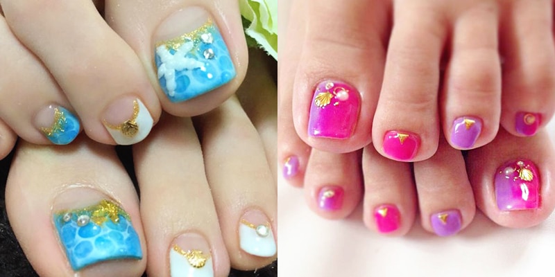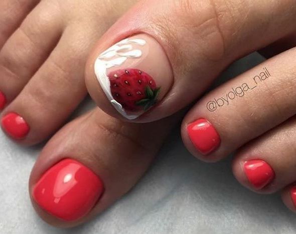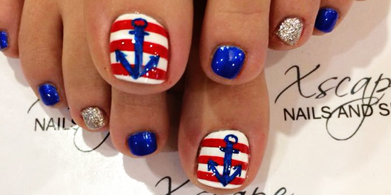 When thinking about summer, of course, an association with the sea arises. If you are going on vacation and do not know what pedicure to do on the road, choose a pedicure with a marine theme. Decorate your nails with anchors, sand and sea, or turn them into a marine vest. You can make the nails look like the seabed by completing the inhabitants of the deep sea.
