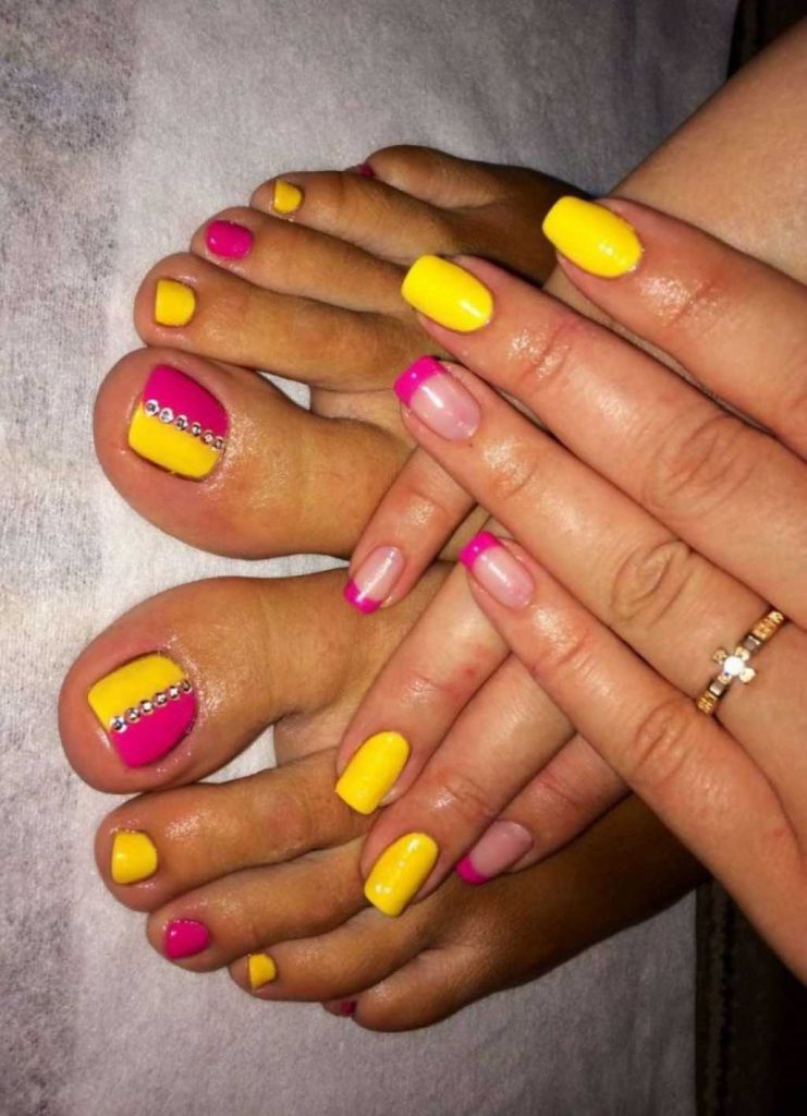 If you are going on vacation, then you can safely choose a combination of pink, blue, yellow and green. If you need a more relaxed option, then look at the ombre in nude shades, such tones are universal and suitable for any season.